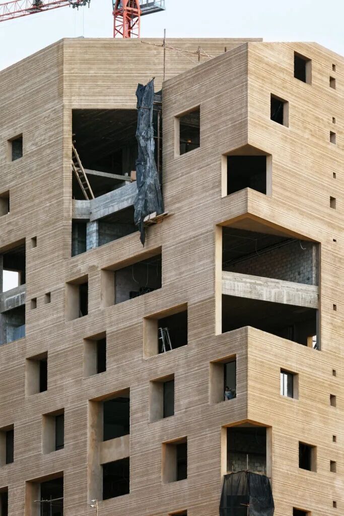 新建筑与老建筑契合,颜色与周围环境的匹配。用亲切的自然纹路治愈城市的伤痕。