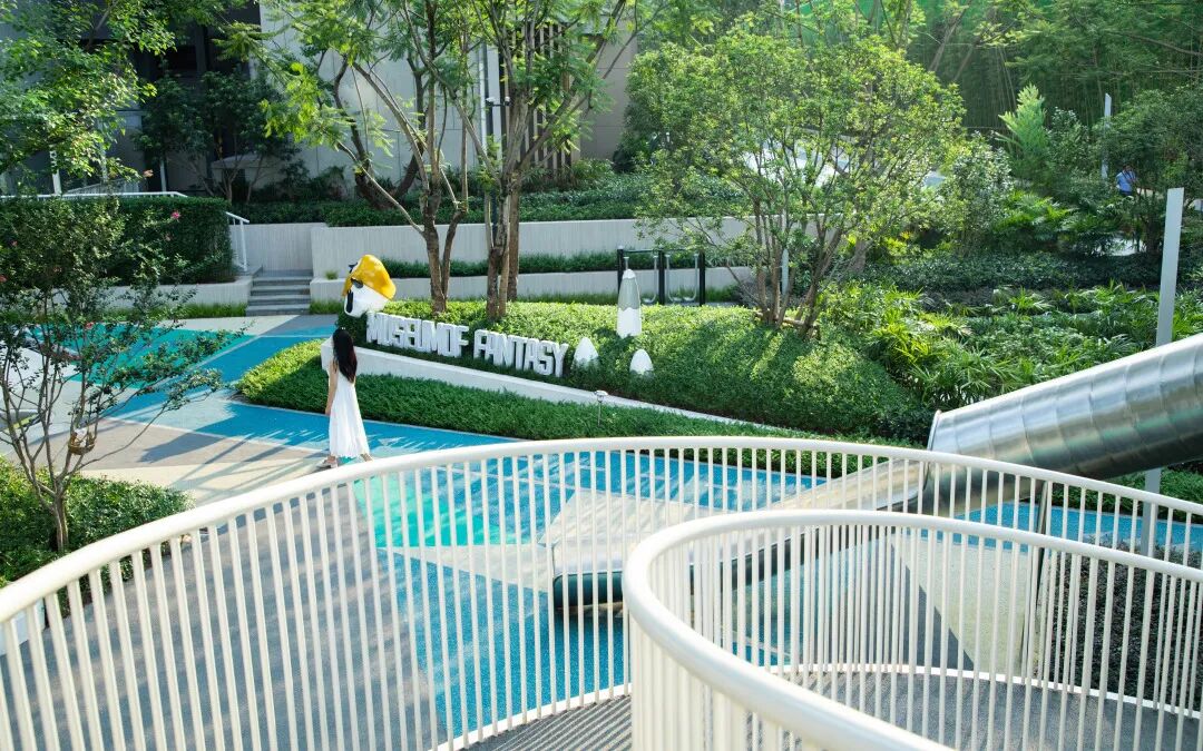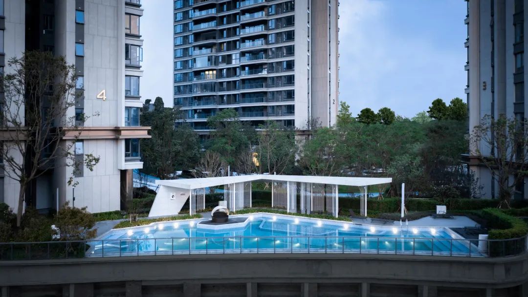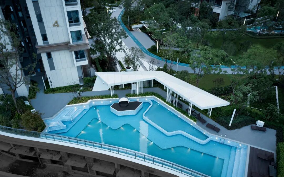 从新加坡金沙酒店空中泳池中汲取灵感,巧妙地利用建筑形态营造广阔的视野效果,设置浅水池区、休闲躺椅区、儿童池区、按摩池区、眺望台等适合全龄人群的活动分区。