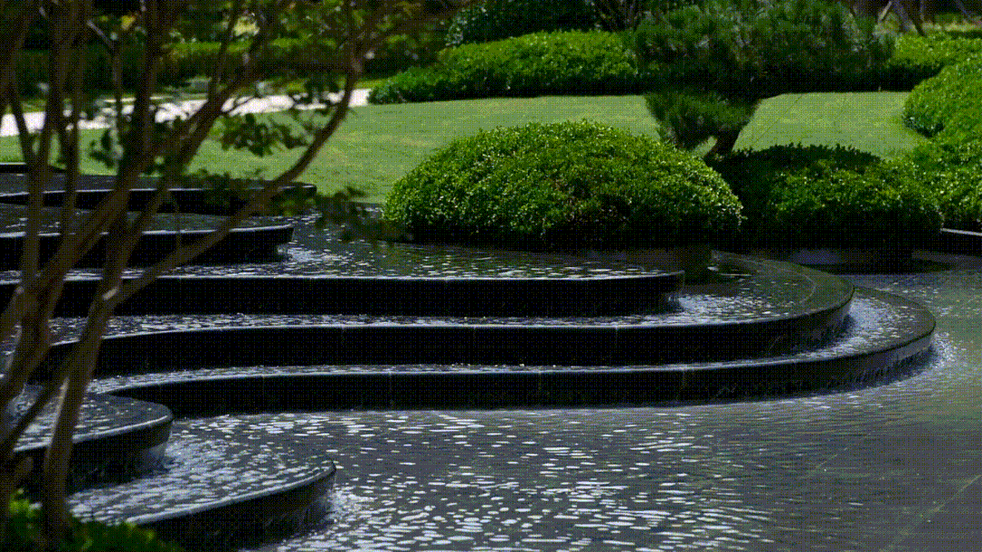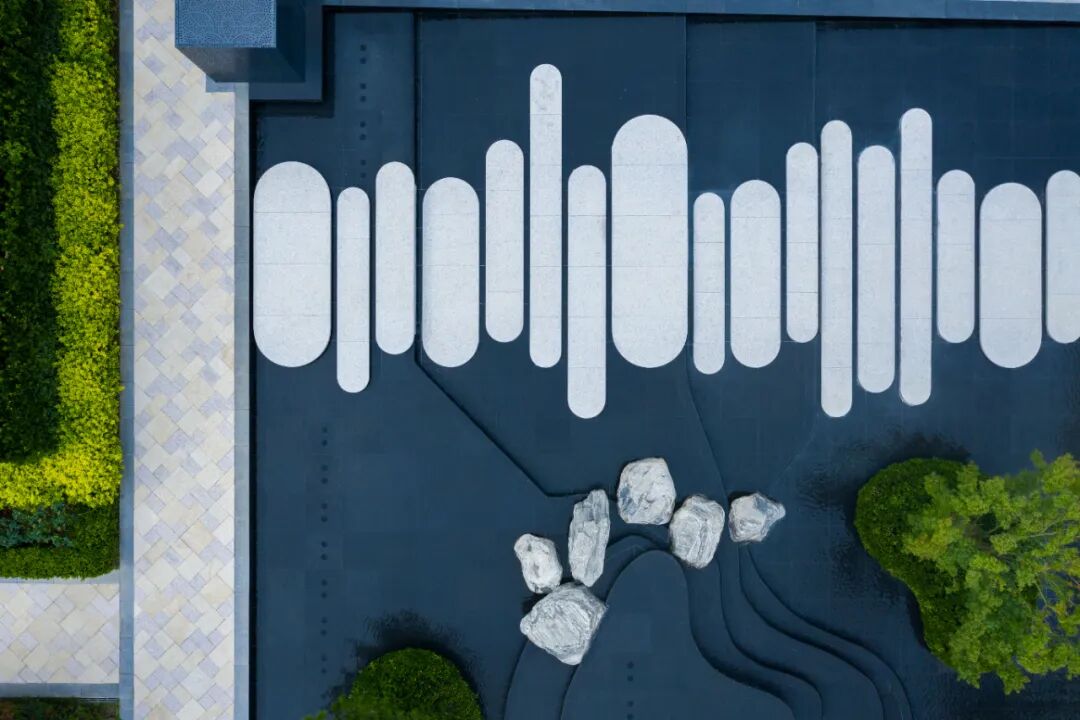 每一笔刻画都是“艺术”缩影。设计以一种打破传统景观的思维模式开展对人文生活、美学内核的探索。设计在自然海洋中获得灵感,将海浪的流线具化为中庭水景的形态,再以置石点缀,如礁石浮于海面,水何澹澹,山岛竦峙。