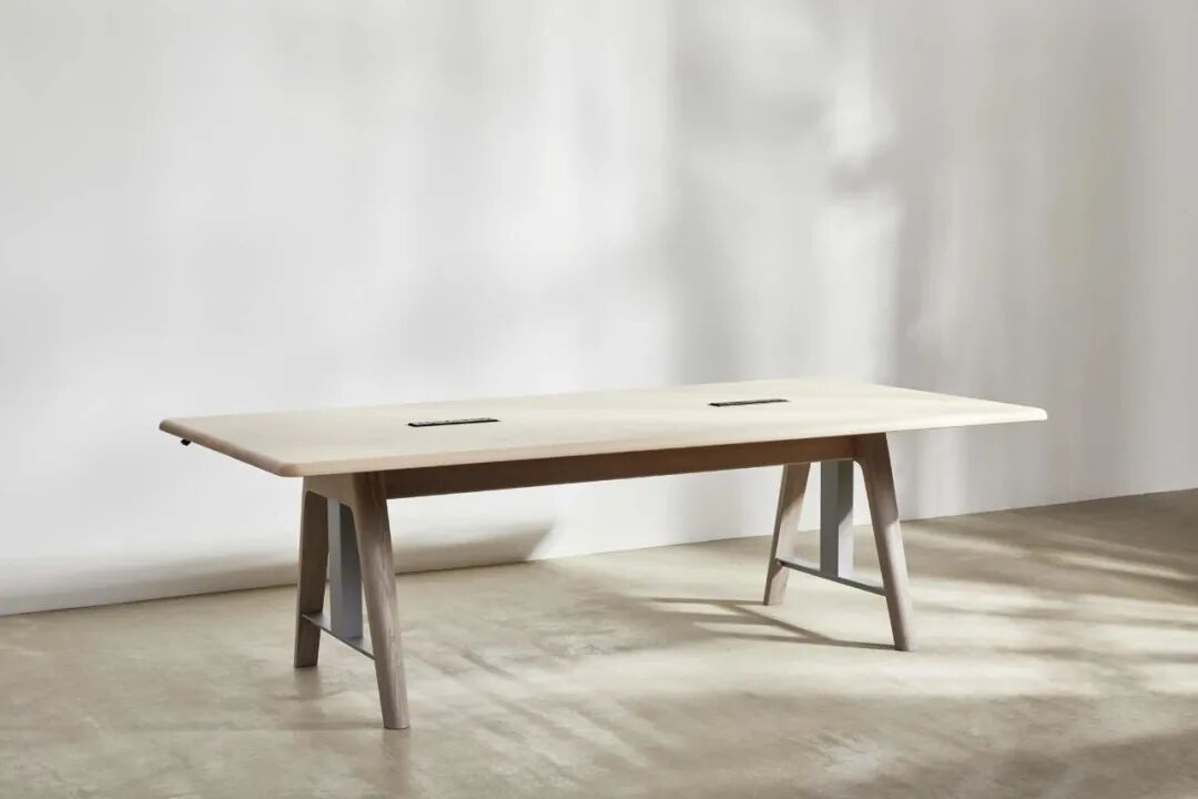 矩形会议桌除了静态选项,还有一款可调节高度的产品,灵活且符合人体工程学。