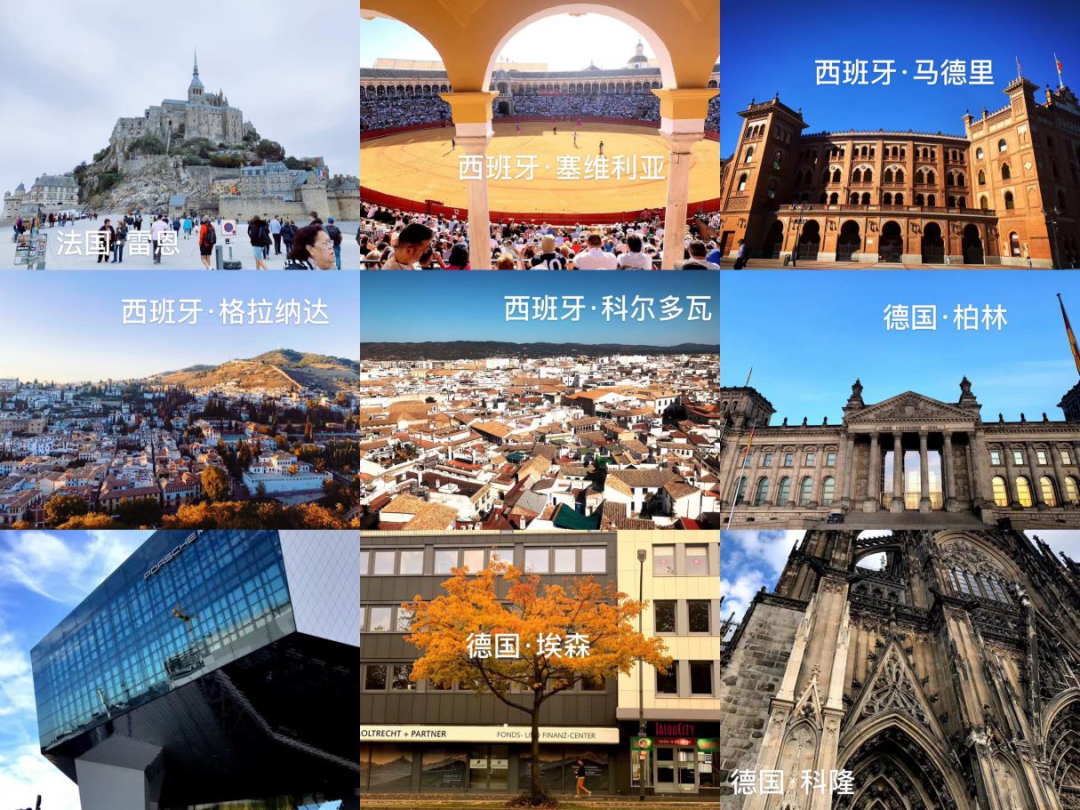 第一场旅行历时10天,从西班牙的巴塞罗纳开始,途径马德里——格拉纳达——科尔瓦多——塞维利亚,最后回到巴黎返回学校。上完课,休息了一周后,开始了第二场旅行目的地是德国,路线是巴黎——斯图加特——科隆——埃森——汉堡——柏林——巴黎,大概花了一周的时间,而后返校上课。