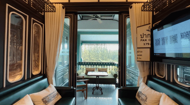 每一辆经过精心翻新的豪华车厢都代表了 Somsak 的一次冒险之旅,包括琅勃拉邦、西贡、金边和清莱在内的目的地,都以鲜艳的色彩和质感再次重现火车旅行时代的浪漫。