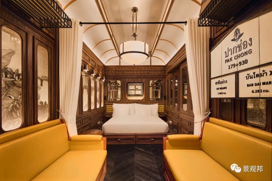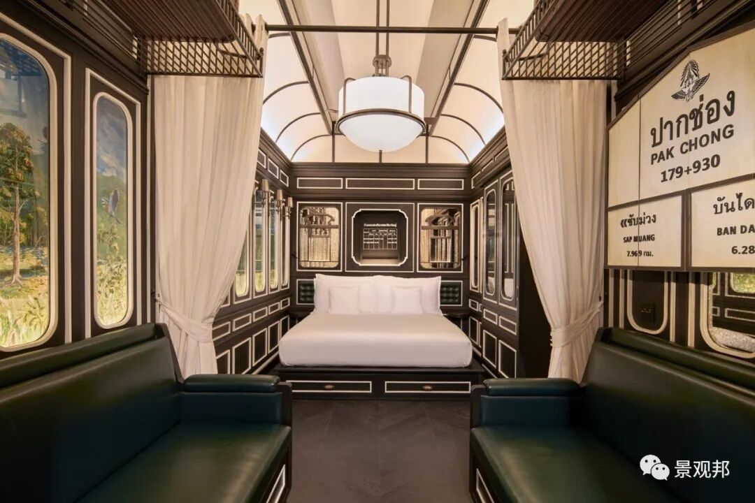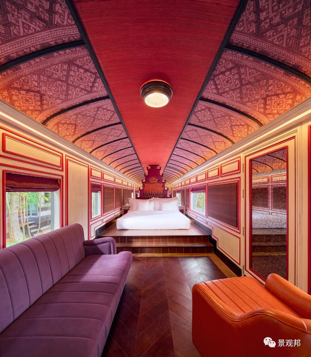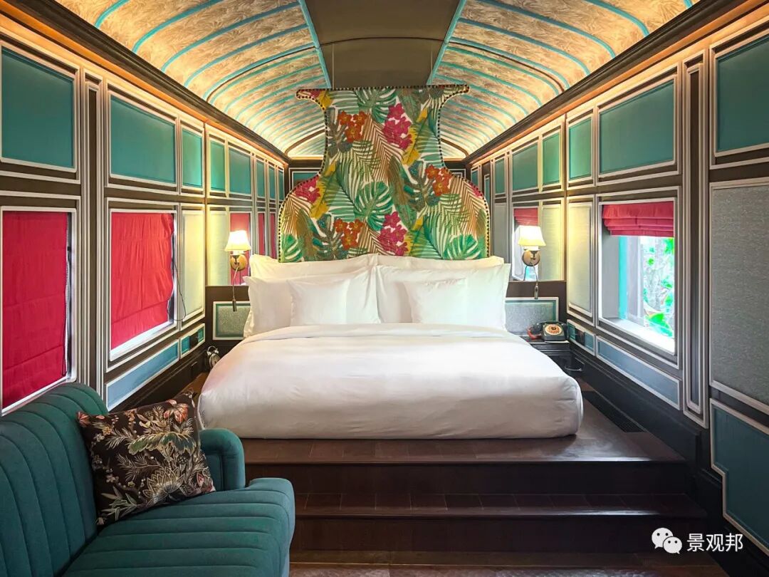 除了45间普通客房,19间各不相同、由废弃车厢改造而来的别墅套房更加别具一格!它们都有各自的命名、设计和装饰,代表了Somsak在旅行中经历的不同目的地,其设计让人回想起铁路旅行的黄金时代,重现乘坐老式火车旅行的感觉。Bensley称:“这是我们迄今为止最「屌」的改造”。