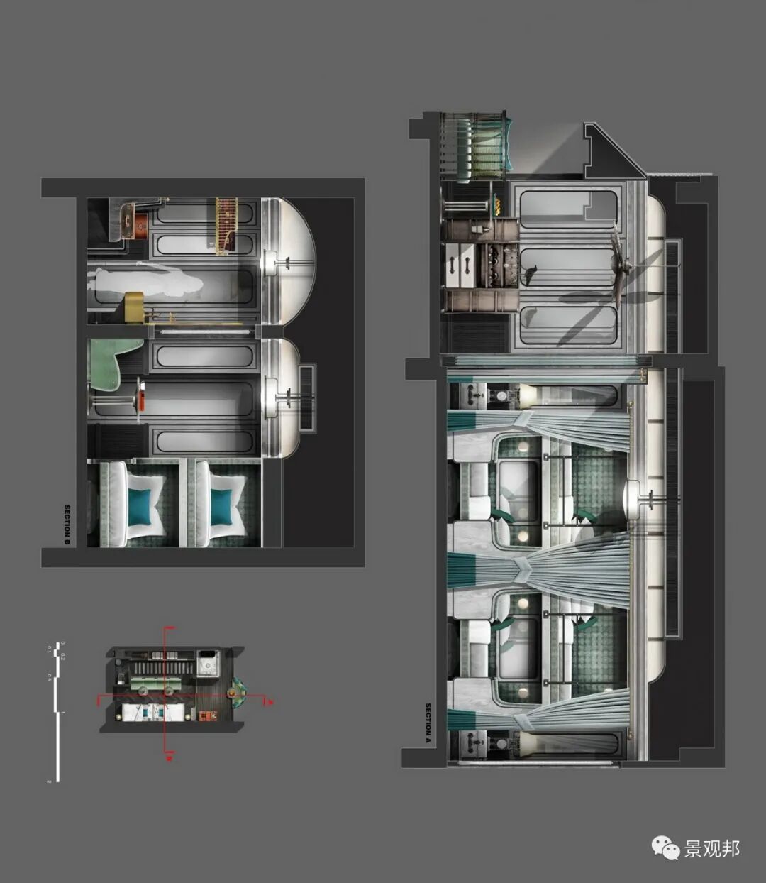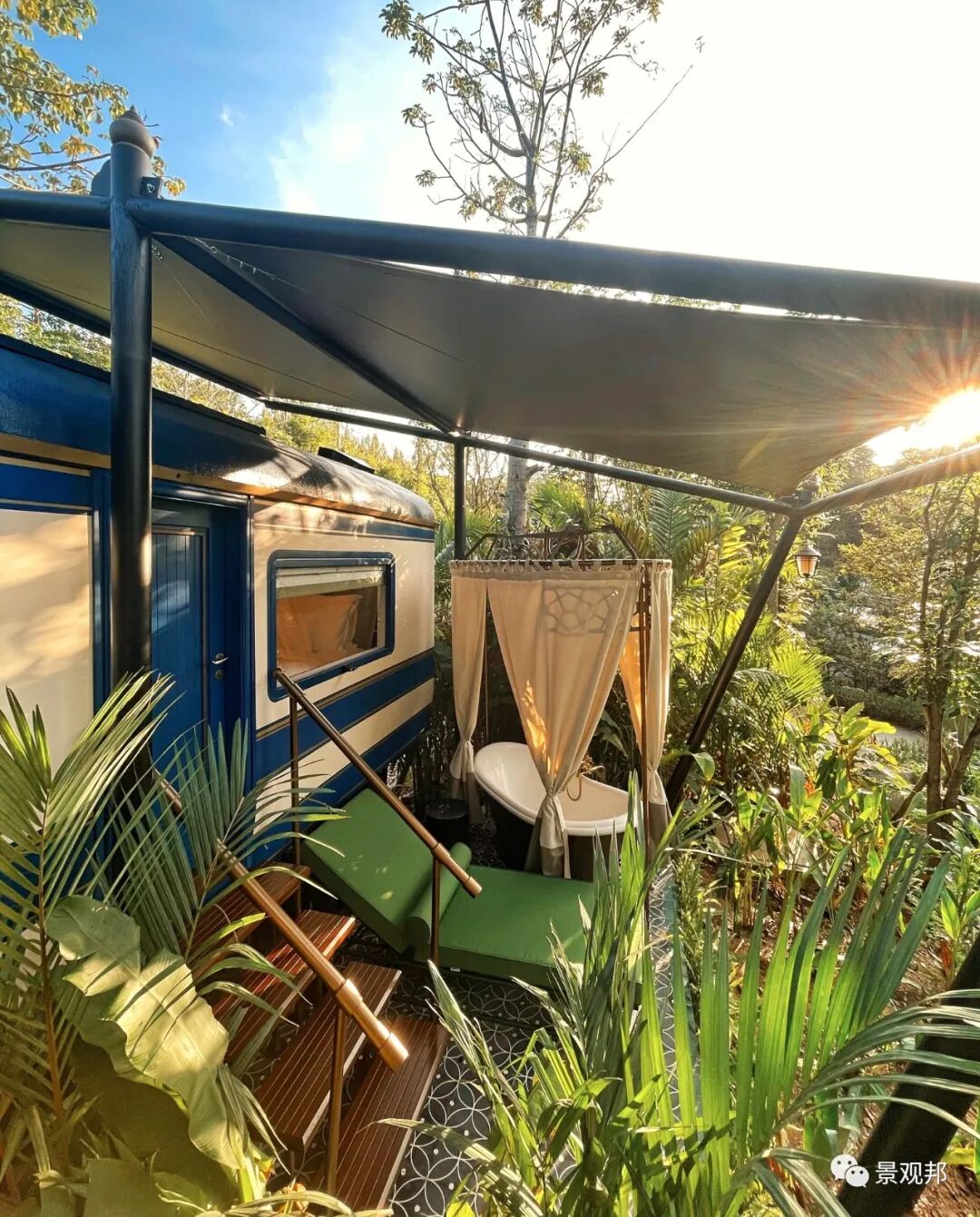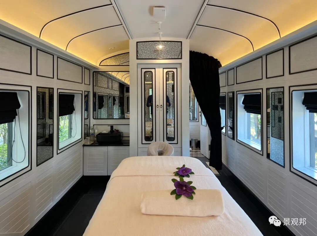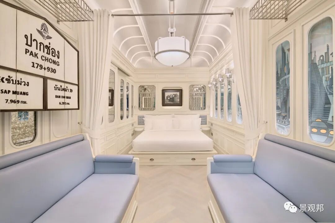 除了45间普通客房,19间各不相同、由废弃车厢改造而来的别墅套房更加别具一格!它们都有各自的命名、设计和装饰,代表了Somsak在旅行中经历的不同目的地,其设计让人回想起铁路旅行的黄金时代,重现乘坐老式火车旅行的感觉。Bensley称:“这是我们迄今为止最「屌」的改造”。