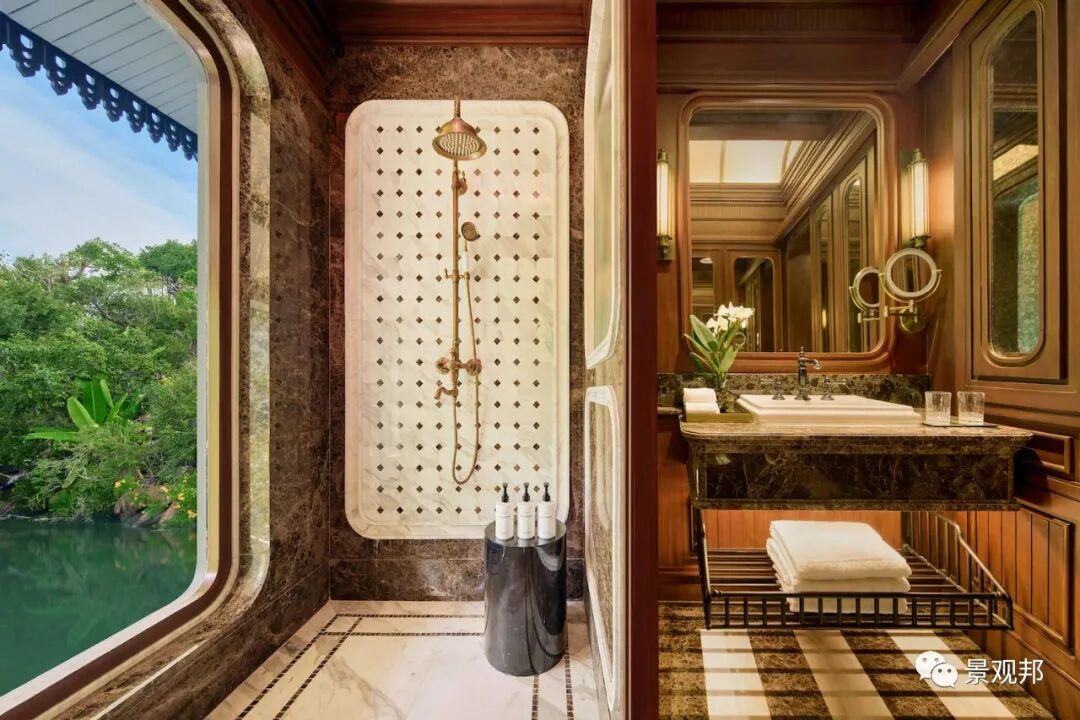 就在前不久,考艾洲际酒店正式开业,这是由Bensley亲自操刀的一家以致敬火车旅行时代体验的作品。酒店坐落在考艾国家公园郁郁葱葱的森林中,占地19公顷,有5个湖泊。