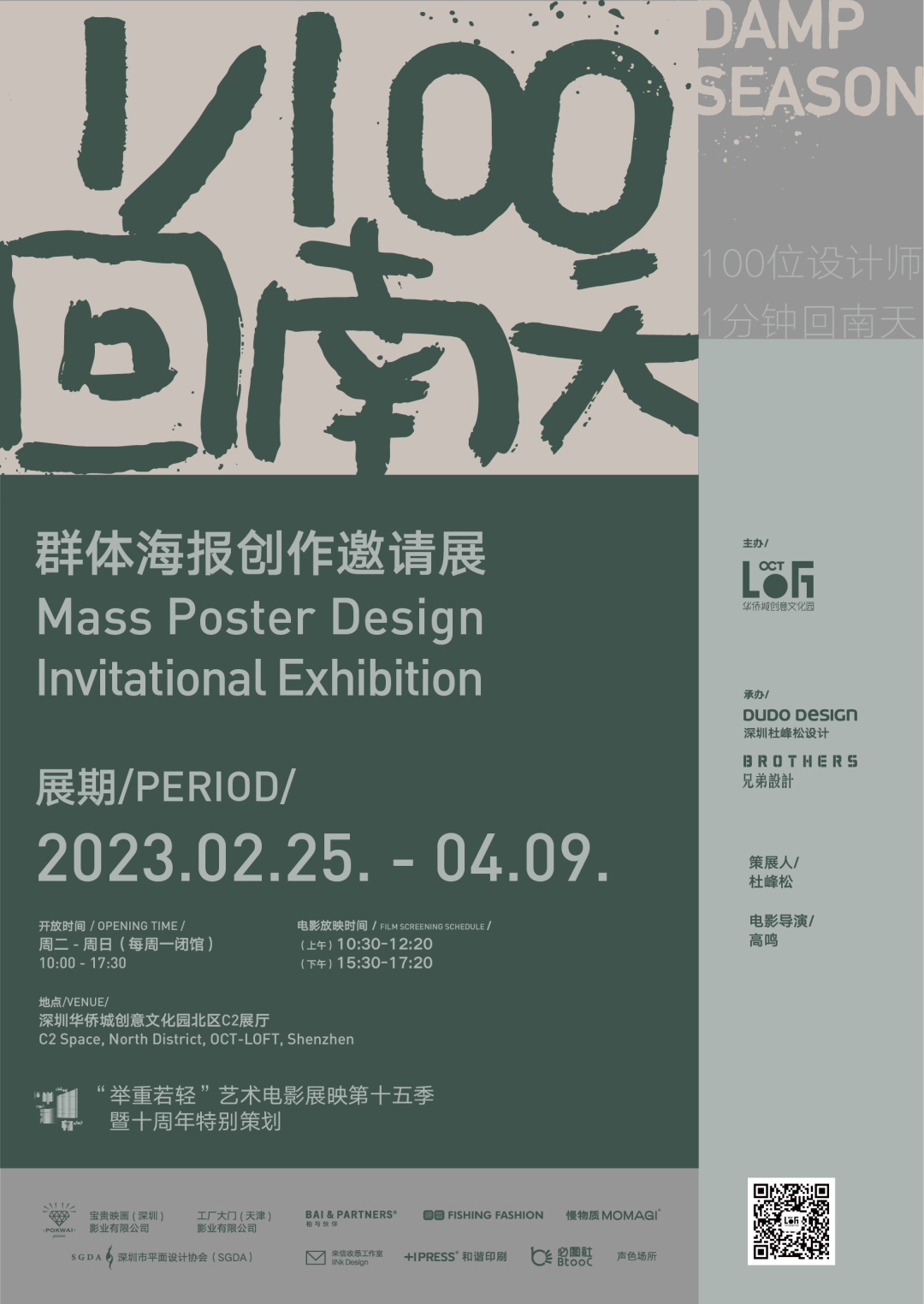 当一部电影被切分为均等的100份,经由设计的语言进行表达,影像与平面之间会产生怎样的对话与碰撞?2月25日(本周六)14:30,由深圳华侨城创意文化园(OCT-LOFT)主办,深圳杜峰松设计、兄弟设计承办的“举重若轻“艺术电影展映第十五季暨十周年特别策划——1/100《回南天》群体海报创作邀请展将在深圳华侨城创意文化园北区C2展厅开幕,100位设计师为深圳本土电影《回南天》中的“1分钟片段”创作的100幅海报将于线下亮相,以各自独特的设计风格“转译”电影内容,为公众带来一场别开生面的艺术文化盛宴。