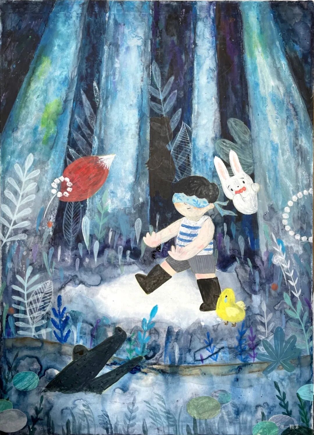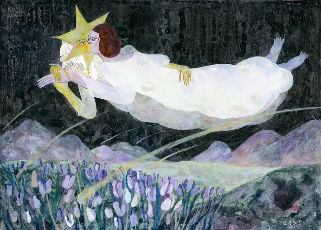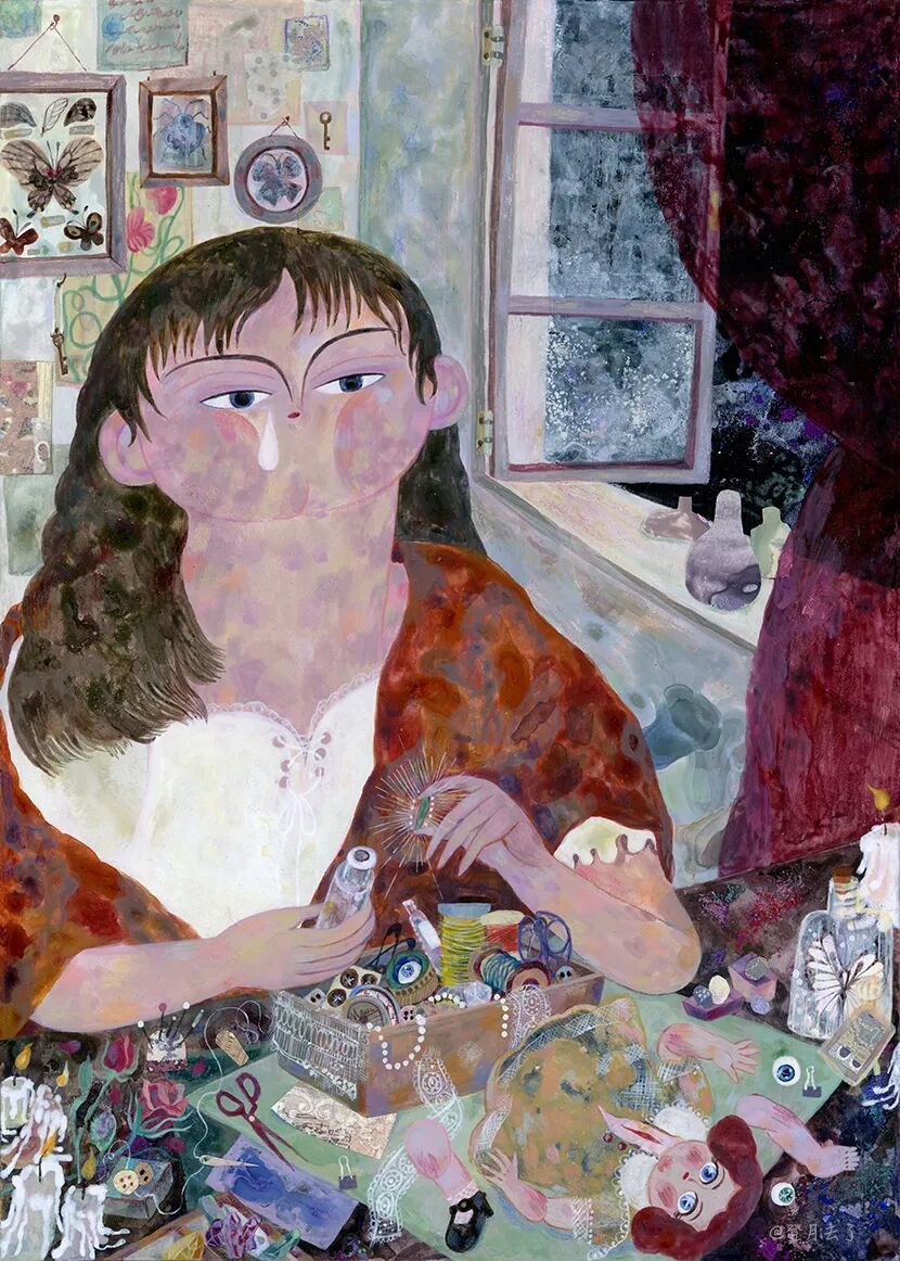 kaka老师就非常擅长用丙烯颜料作画