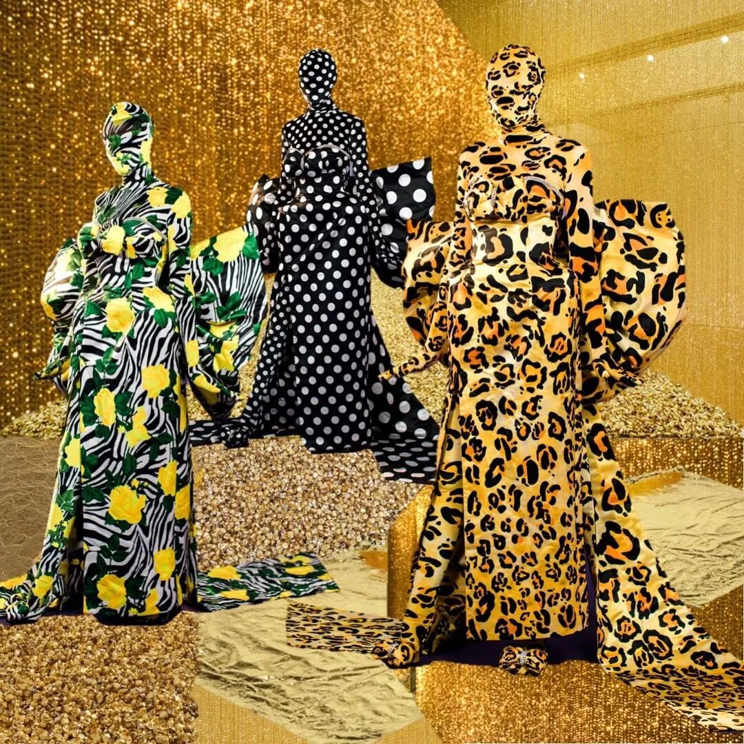 浓郁的地域文化和亚文化结合,头巾服饰一体的设计让人联想到穆斯林女性穿戴的头巾和长袍,神秘又性感。