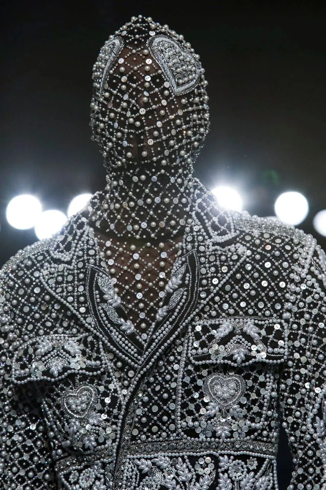 设计师对面具及乳胶的迷恋也是深入骨髓,《鲁保罗变装皇后秀》第7季冠军Violet Chachki牵着他的“男宠”自信满满的走下T台,怪不得有网友调侃,他的秀不满18不能看呢。