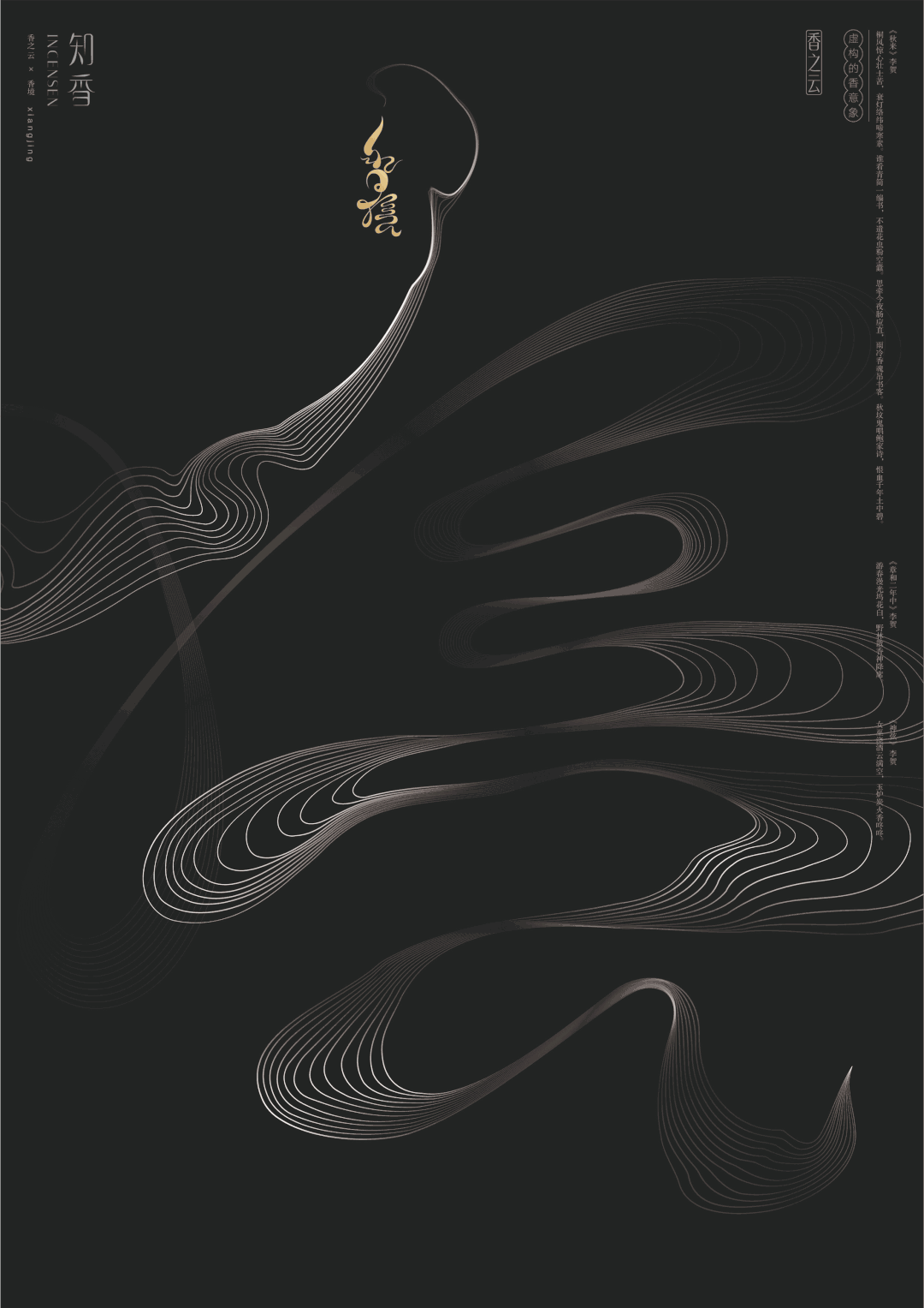 中国香文化,用“香”作为媒介和载体来进行的文化活动,包括香材、香的制作、品香的方法、香的历史、品香心理学、香的贸易史等以及与之相关的物质和精神层面的其他内容。它体现了中华民族悠然的生活态度与自我愉悦心灵的智慧,表述了中华民族谛听纯净心灵之音的禅意与简朴。作品以香意象为概念切入点,对香源香气及诗词中所描述的香进行视觉化呈现,希望借由此让更多人认知到香。美好的气味可以改变人的心情,提升人的心境,使人安宁和愉悦,从而智慧地思索,哲学地觉悟,诗意的栖居。