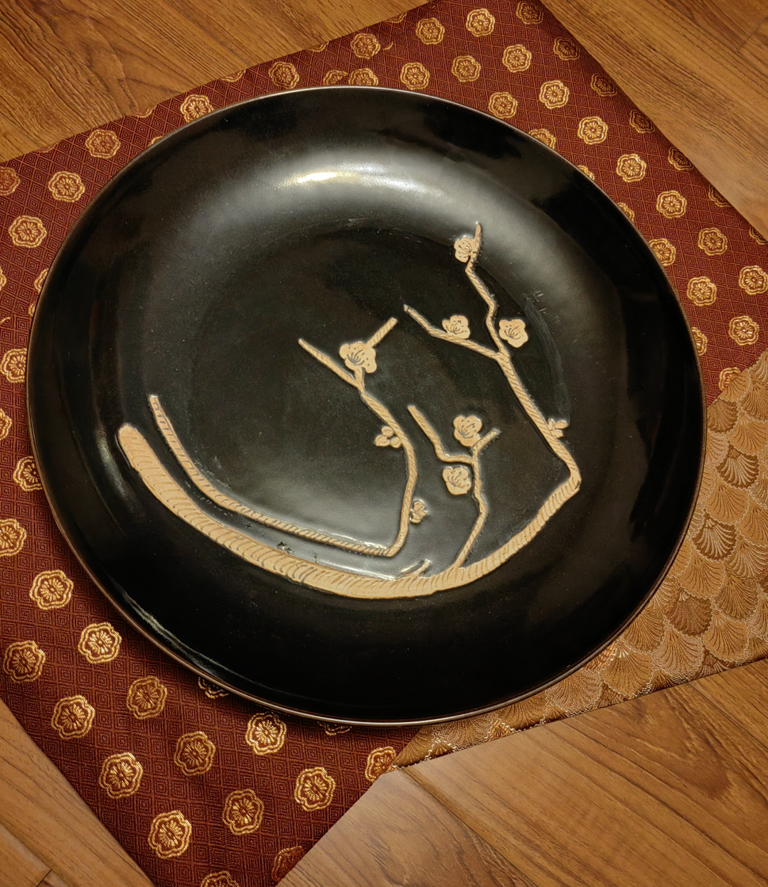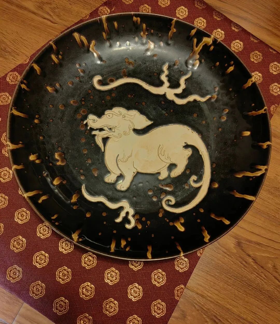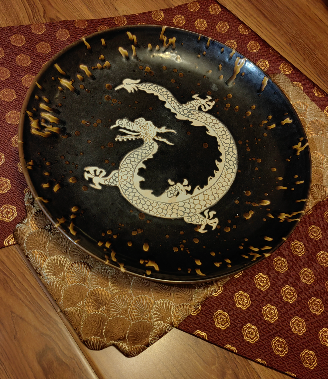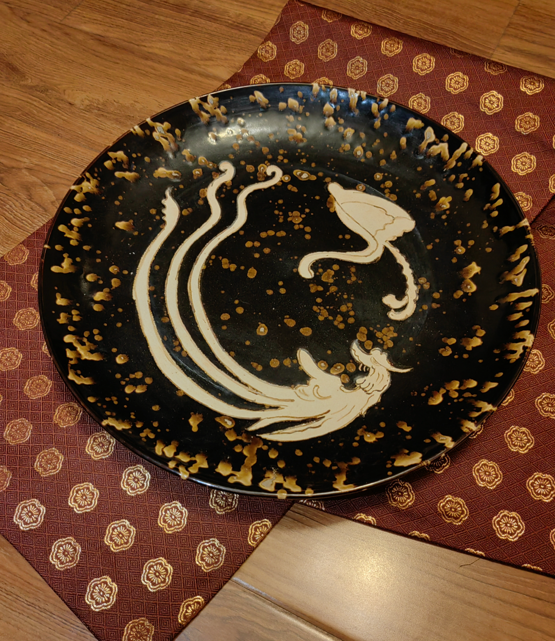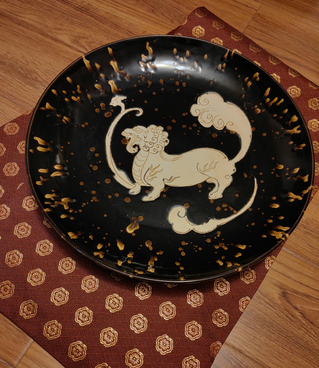 作品具有一定的学术高度与审美价值,通过硕士研究生阶段,作者对吉州窑玳瑁釉及黑釉瓷器的审美及制器理念进行透彻和深入的研究,设计一组八件吉州窑玳瑁釉及黑釉盘,取名玄青缁色。作品通过釉色特点概括性的运用,通过龙、凤、麒麟、獬豸及梅兰竹菊纹样八件瓷盘的设计,汲取传统的吉州窑瓷器装饰纹样艺术特征,赋予作品具有一定展示性和艺术性,在具有形式语言的同时注重其构图、纹样完整性。该生的毕业设计与毕业论文达到较高的融合度,且主题明确、实验性强。