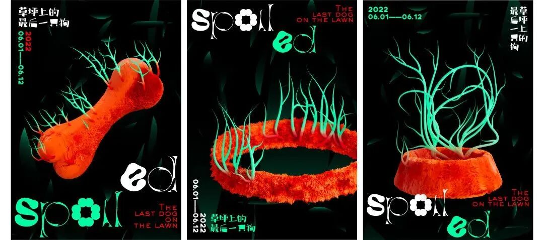 作品以狗狗为第一视角,正视人类的自我中心主义给其他生命带来的畸形进化的危害,借助人们对食物发芽即变质这一概念的理解,将这种发芽变质的状态通过设计语言转化到狗狗的日常用品上,狗狗的玩具发芽了,碗盆发芽了,项圈也发芽了……,以此突出设计主题,传达出当下变质的养宠理念、变质的宠物身心的现象,希望透过作品感受到自然生命的呐喊,唤起人们对问题的重视,尝试寻求更健康的养宠理念。