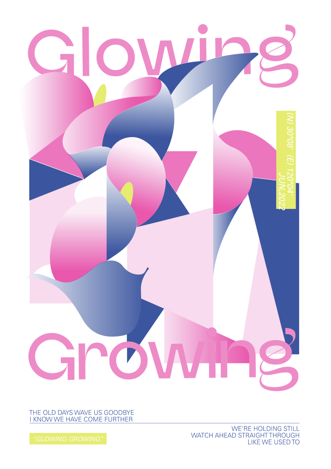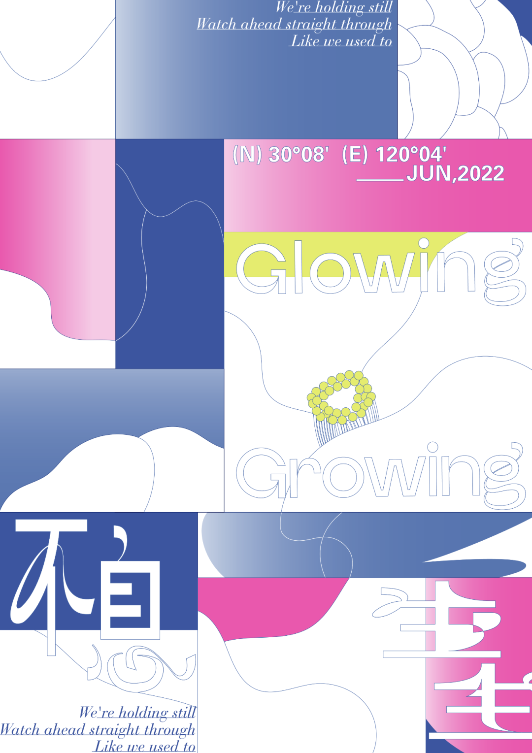 “生生不息”一词出自《周易·系辞上》 :“生生之谓易。”宋·周敦颐《太极图说》 :“二气交感,化生万物,万物生生而变化无穷焉。”“生生不息”意为新的事物和生命不断地产生延续。从自然界汲取灵感,将自然所给予的视觉与情感印象吸收过后,借助平面表现手法,将自然花卉与平面几何色块结合延展成多样性的图像,营造富有勃勃朝气的生命意象,构建与平面设计之间的连接,抒发关于美、情感、生命的理解体验。