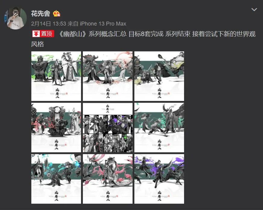 花先舍:最近周概念的更新速度慢了,团队事情有点忙不过来。但创作计划还是会坚持的,还没发出来的新坑我已经挖了不少,只是没发出来而已,现在挖的坑都有点填不过来了(笑哭)。最近对古朴的东西比较感兴趣,特别是带有文化和历史感的,有机会也会尝试一下。