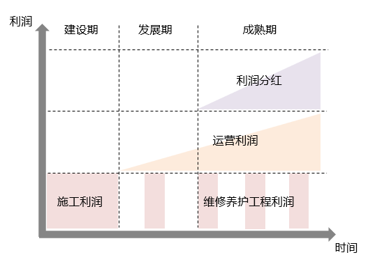 盈利模式转变:由建筑施工的单一利润变成建筑上下游多个利润点的汇集,分享项目投资、运营等多个环节的利润。