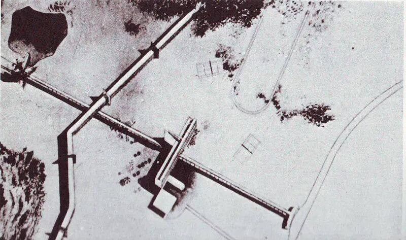 选择在城镇内分配房屋和公共建筑的系统主要是出于对绘图和模型底板的某些图形效果的渴望,而不是出于方便和合理性的考虑。到哪里去寻找“新的劳动组织、生活方式和文化等”?这个项目中表面上存在'基于新的社会结构、先进的科学技术和最经济地利用现有资源'?这种“外行”观众看不到的“新社会结构”是通过什么方式在城市设计中表现出来的?