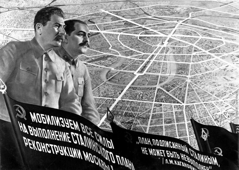 为了返回苏联制定计划,为了委员会的利益放映了宣传片,鼓励人们进行一个空想:“城市成为国家的一部分,我会住在离我办公室30英里外的一棵松树下,我的秘书住在另一个方向离它30英里的另一棵松树下,我们都有自己的车,会用尽轮胎,磨损路面和齿轮,消耗油和汽油。所有这些都需要大量的工作,有巨大的劳动力需求,对所有人来说已经足够了:未来没有失业威胁,再也不会......