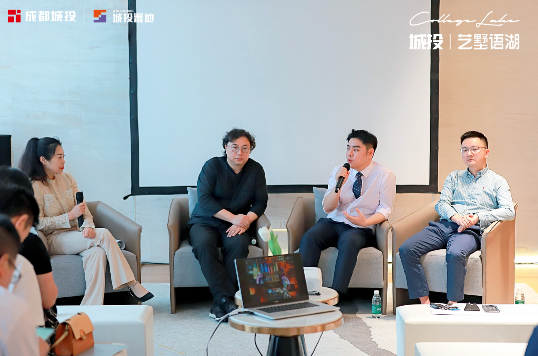 6月10日在城投艺墅语湖销售中心举办的《回归人本 重塑体验——2022 CAZ高质大作深度解构》沙龙活动现场,基准方中集团董事、联席总建筑师、北京基准方中董事长 李迅涛,ABO奥维文创集团董事长 陈诚,保利地产投资顾问有限公司成都分公司副总经理 龙龙以及四川知道总经理 郭洁就何谓CAZ以及CAZ将对一个区域产生什么样的影响展开了精彩的观点碰撞。
