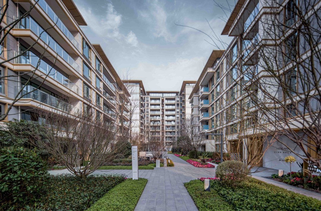 这样的极简美学设计,不仅能延长室内视觉空间,也能拉长建筑外部线条,可给人更舒适的感官体验。外立面使用了现在很多高端项目都开始舍弃的高成本石材,配以金属线条+真石漆+玻璃幕墙等高品质材料,呈现出一个低密高品质社区应有的品质感。舍得下成本用材料,也是城投置地作为国企平台的社会使命感的体现。