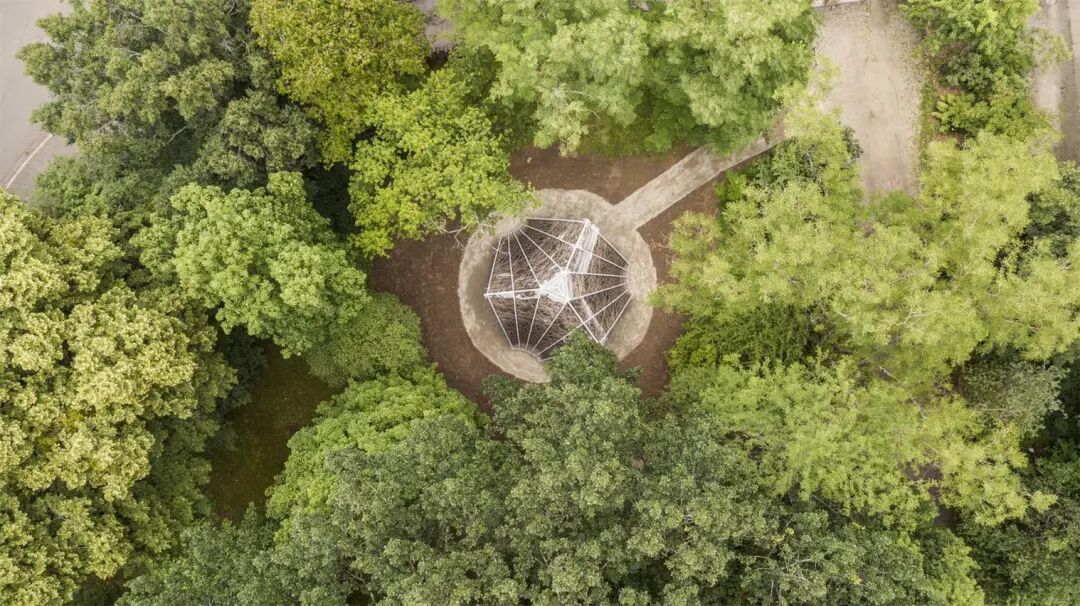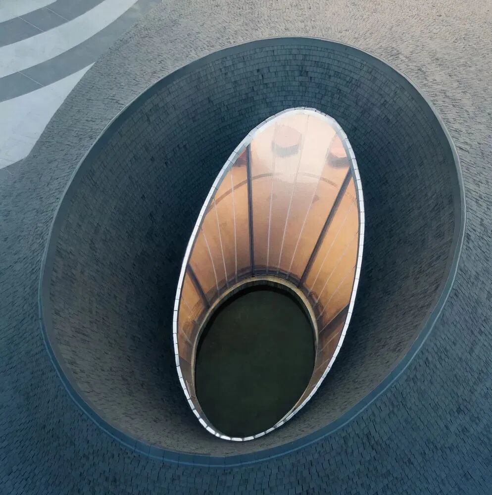 由远及近,你会发现建筑的主体,实际是由六个呈漩涡状聚拢的桩子组成的,建筑师希望借由这个有机的形状,将其周边独特的自然气韵揽入其中,从而使建筑成为“观照宇宙和自然现象的一种天体工具。”
