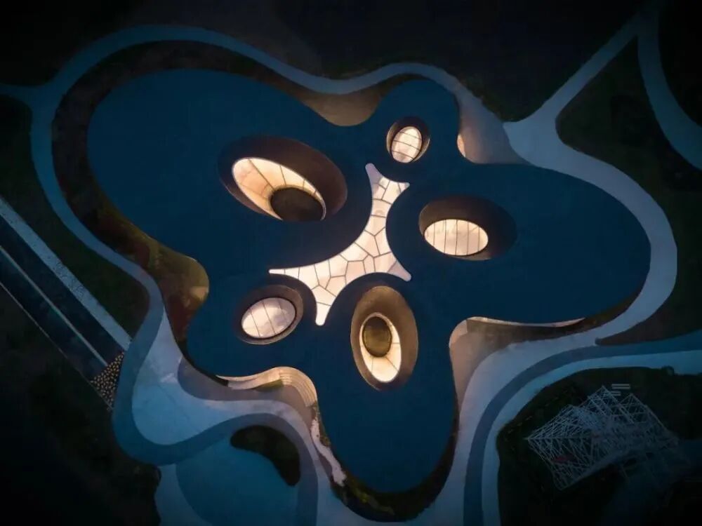 整个建筑通过逐渐改变室内高度来创造不同的功能区域。展览中心的形态和质感不仅体现了园区的主题,也体现了独特的空间形态元素。