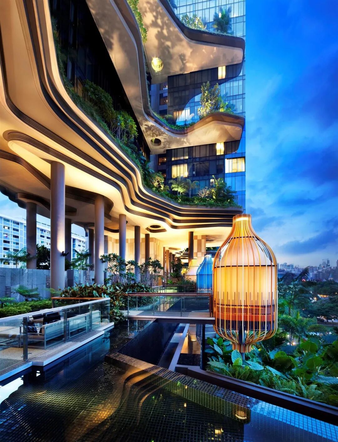 这座新加坡酒店建筑是名副其实的“岩石森林”,清水混凝土的材质上覆盖了大量的绿色植物“柔”与“刚”,“生”与“死”的材质对比让人第一眼目睹便有惊叹其巧妙构思之感。