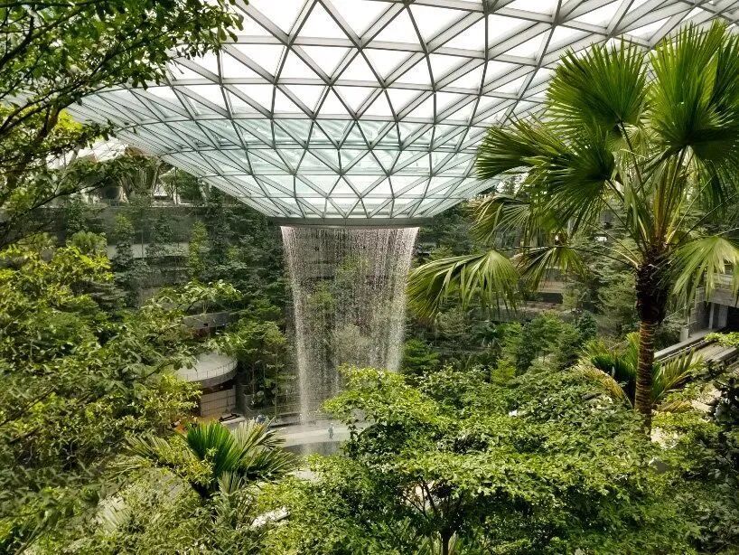 星耀樟宜坐落于新加坡樟宜机场第一航站楼前,该机场被认为是一个密集的市场一个天堂花园的结合。