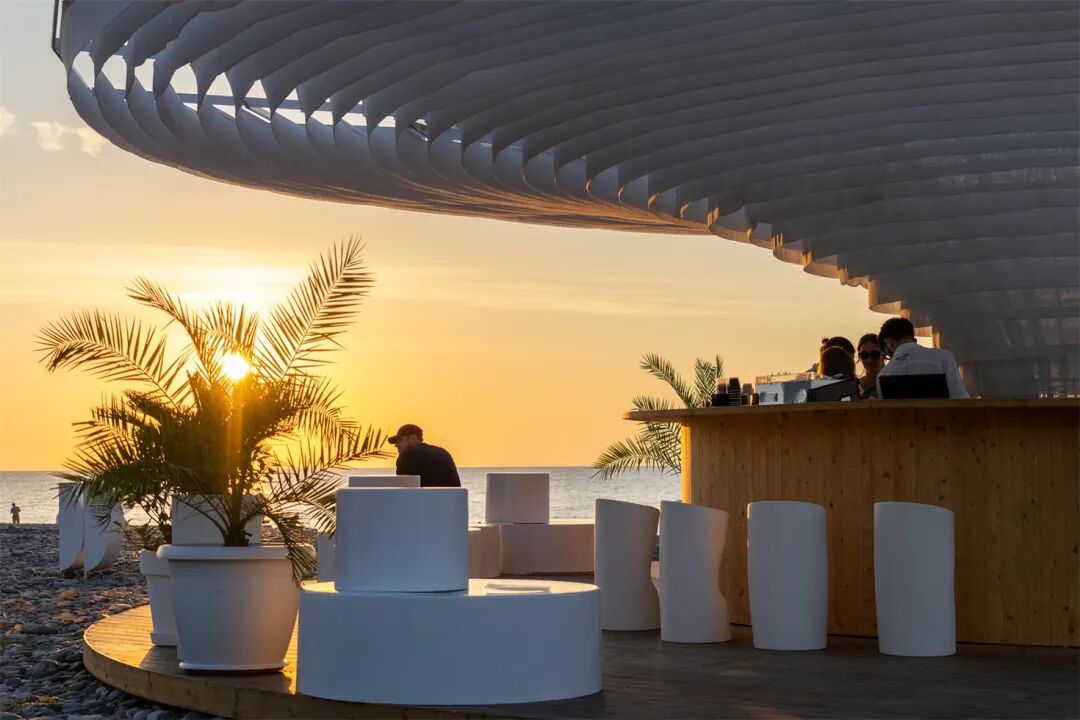 Meama Collect海滩酒吧是巴统海岸的临时季节性设施,是咖啡和鸡尾酒品牌的锚点。