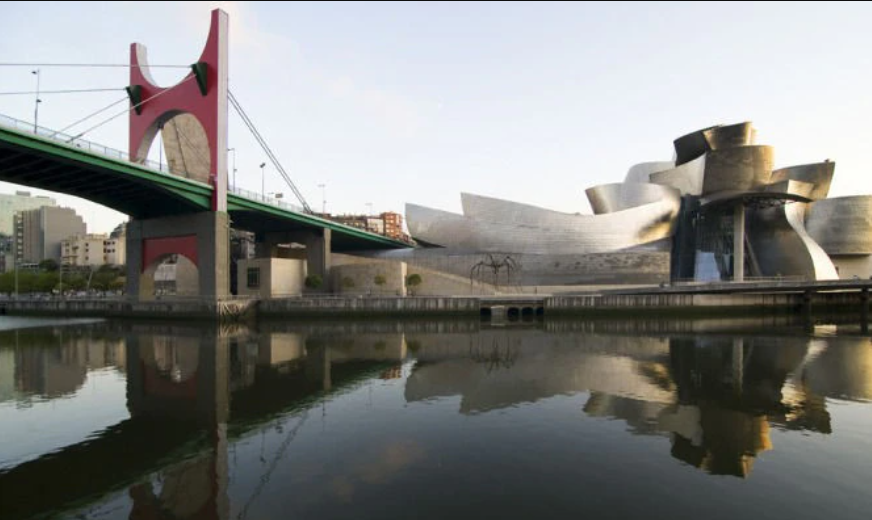 弗兰克·盖里的古根海姆博物馆不仅仅是一座博物馆,更是一座雕塑。它的33,000片钛片会根据天中的时间改变颜色,已成为这座城市的象征。耗资1亿美元,在1993年10月至1997年10月的四年中建成的当代艺术中心占地24,000平方米,其中11,000米为展览空间。外面的雕塑有杰夫昆斯的《小狗》,昆斯的《郁金香》和路易丝:布尔乔亚的《妈妈》。
