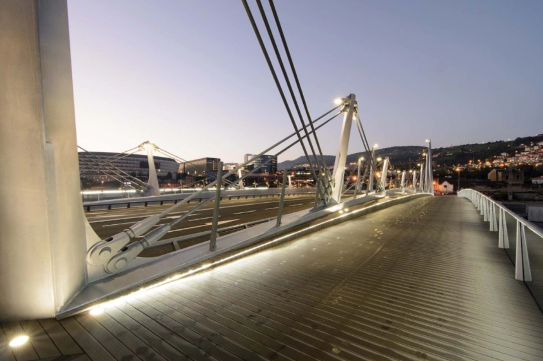 圣地亚哥·卡拉特拉瓦设计了通往城市的门户: 拉帕尔马机场,建筑形象取自一只鸟,机场的屋顶延伸到立面,从上面和周围的山丘都可以辨认出来。卡拉特拉瓦也设计了Zubizuri (巴斯克语为白桥)。它的形状和光滑的玻璃砖清楚无误,它将Ensanche地区与坎波德沃兰坦街连接起来,沿着Nervion河口的河岸延伸,成为这座城市最受欢迎的步道之一。