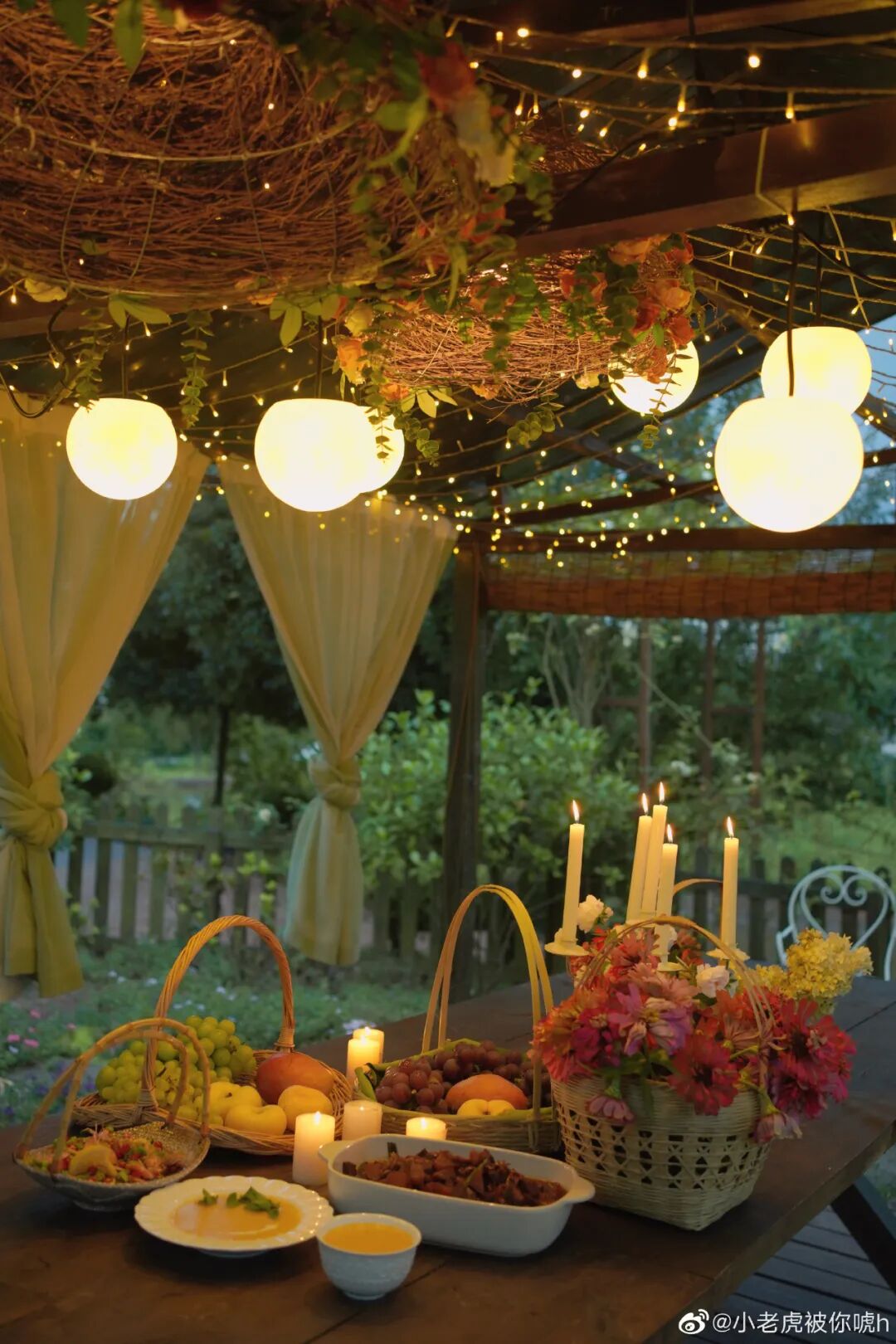 拉上帘布,挂上彩灯