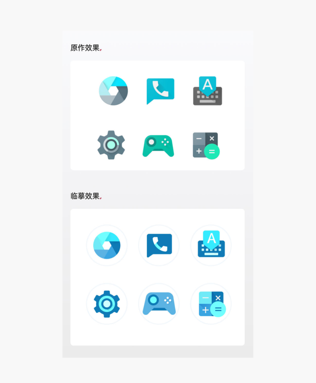 大家看下面这组练习,上面是谷歌的原版图标,下面是练习作品,大家觉得哪组颜色更耐看?