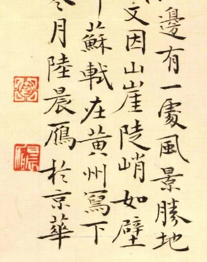 所谓方笔即发笔时有棱角,是书写楷书的主要方法,方笔运用得好能给人以一种雄强、劲迈、爽利、沉峭的美感。这点,我们在黄道周小楷中尤见其势。