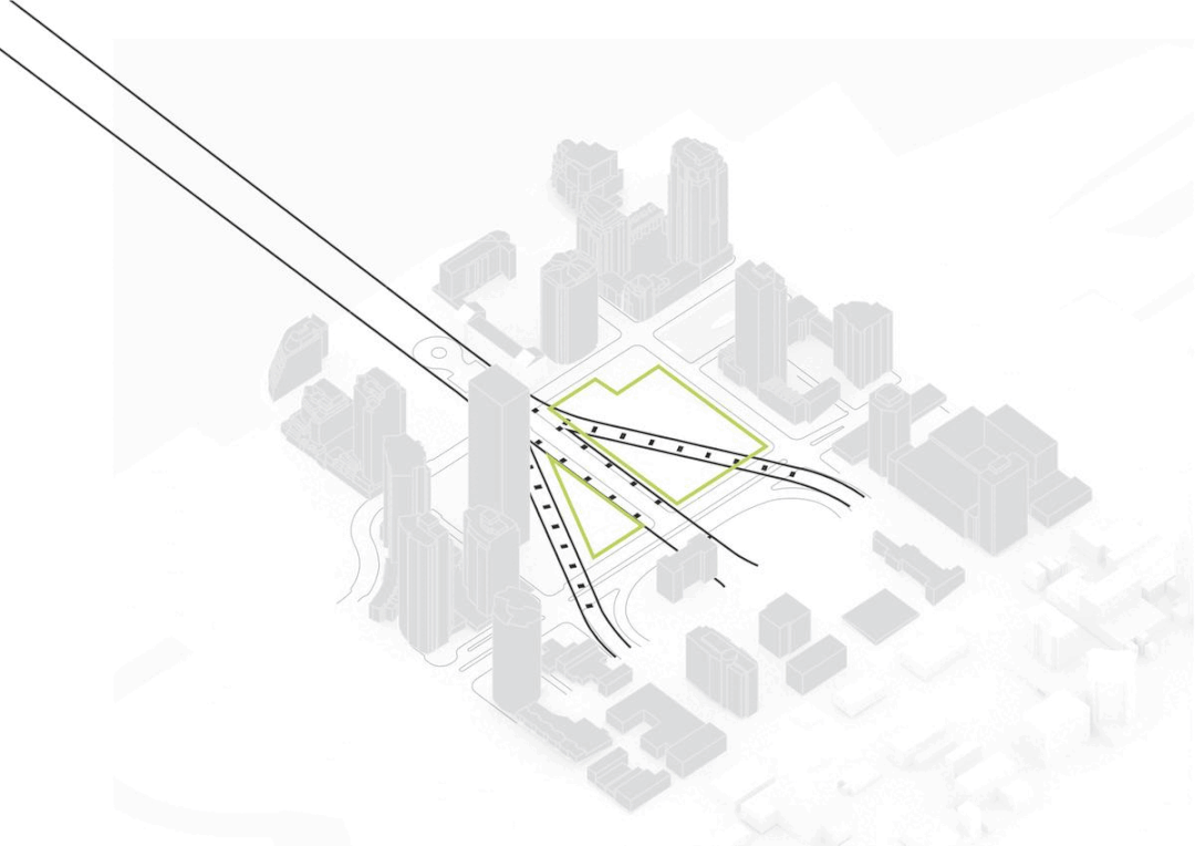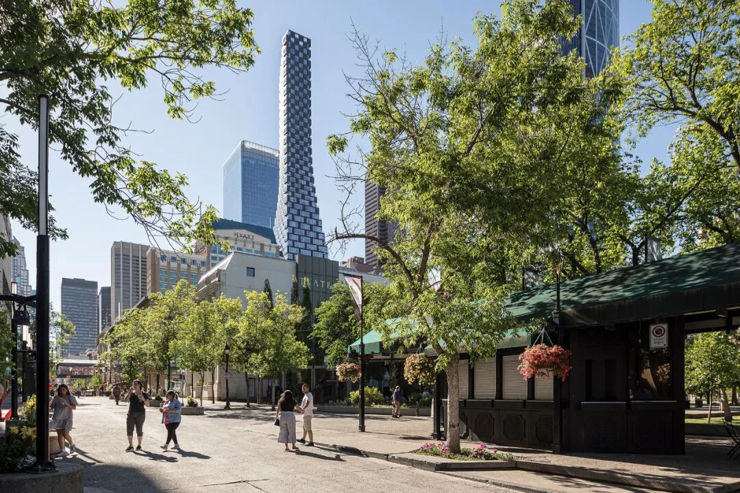 “卡尔加里市中心已经发展成为典型的北美城市中心,这里有成群的企业大楼,周围环绕着低密度的郊区住宅。“卡尔加里天空塔”试图在市中心的轻轨和主干道交汇处建立一个生活和工作的生动混合体,为这里创造一个更加多样化和步行友好的城市中心。”