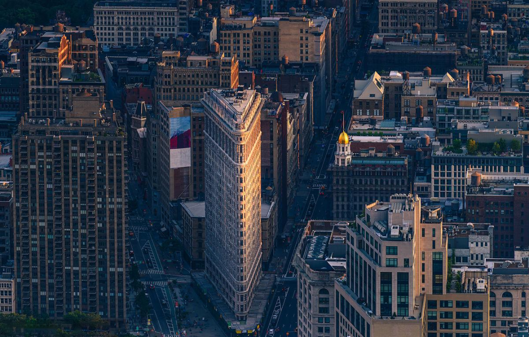 熨斗大厦位于纽约曼哈顿第五大道,1902年建成,同样位于三条道路交汇形成的狭长的三角街区