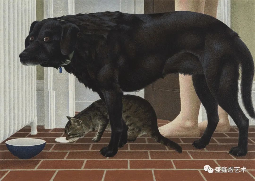 他的题材总是从他的直接环境中选择:他的家人、他饲养的动物、他家附近的风景。然而,这些表现绝不仅仅是对日常生活的记录;它们是一个充满欢乐和美丽,令人不安和危险的世界的高度代表性科尔维尔多次改变他的介质,从油到蛋彩,再到油和合成树脂,1963 年之后再到丙烯酸聚合物乳液。