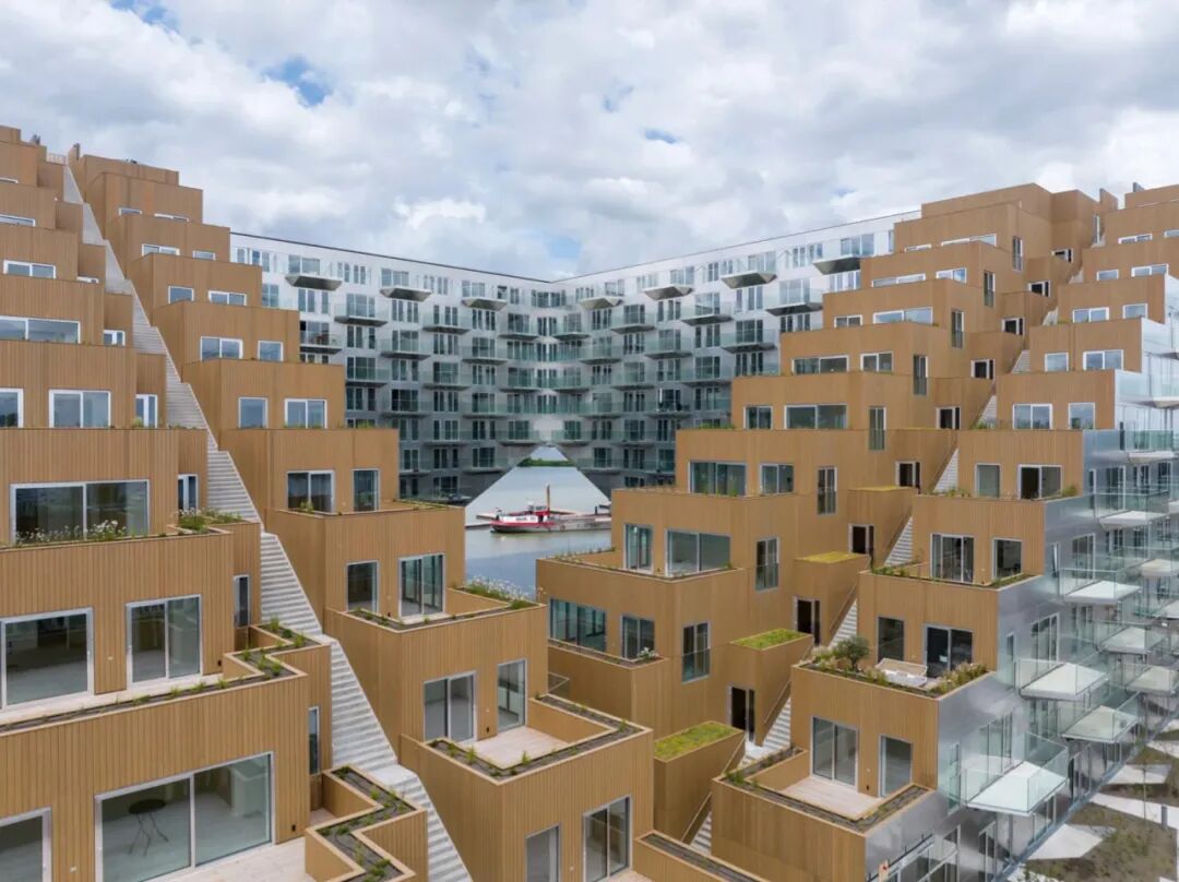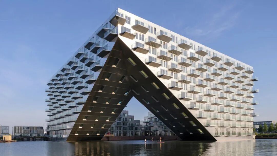 丹麦建筑事务所 BIG 和荷兰事务所 Barcode Architects 在阿姆斯特丹 IJburg 区的 IJ 湖上设计了一栋棱角分明的住宅区。