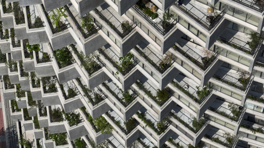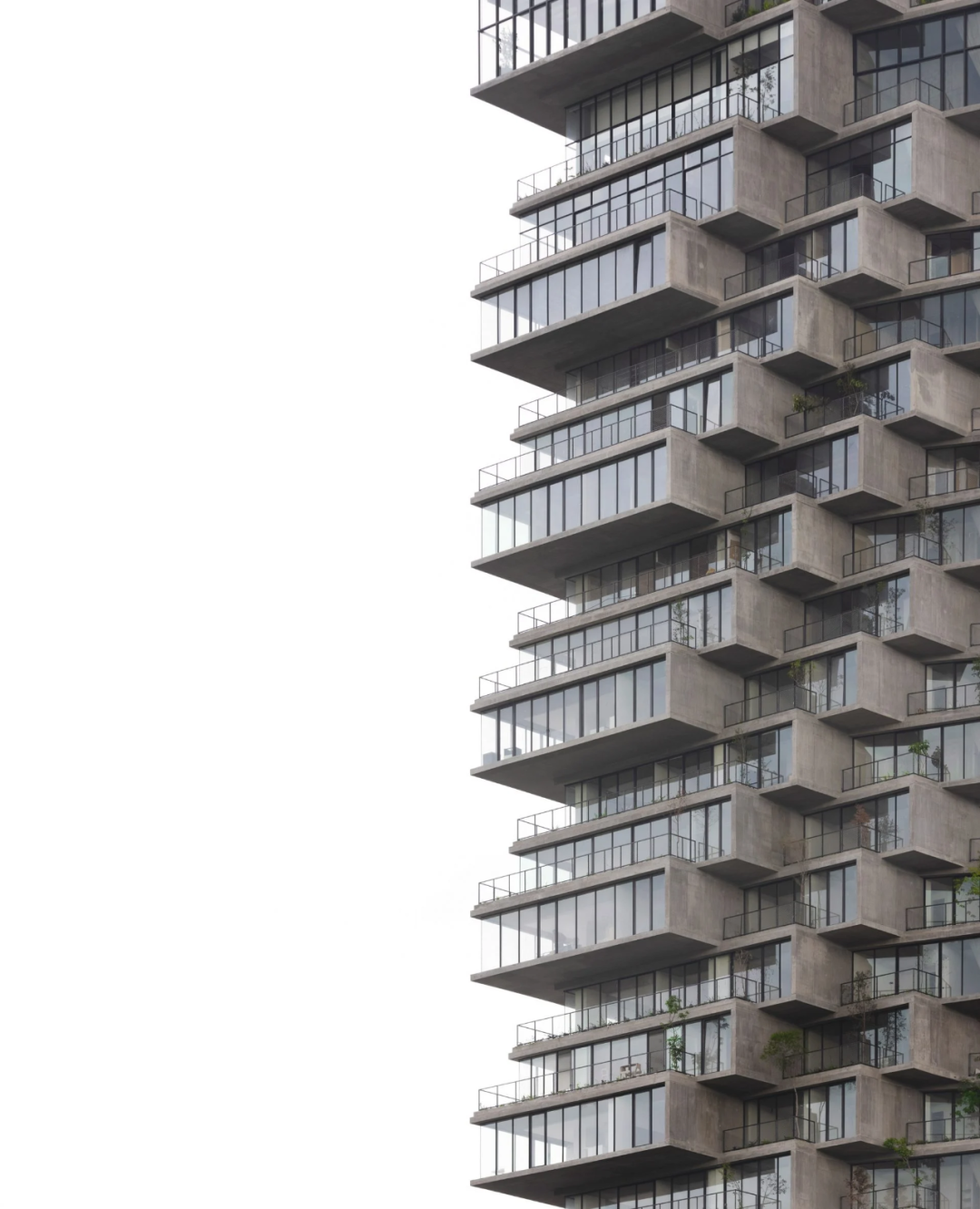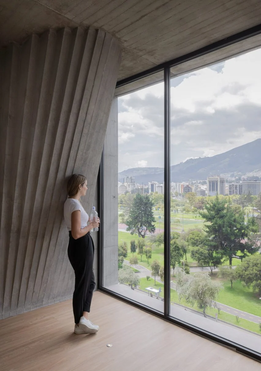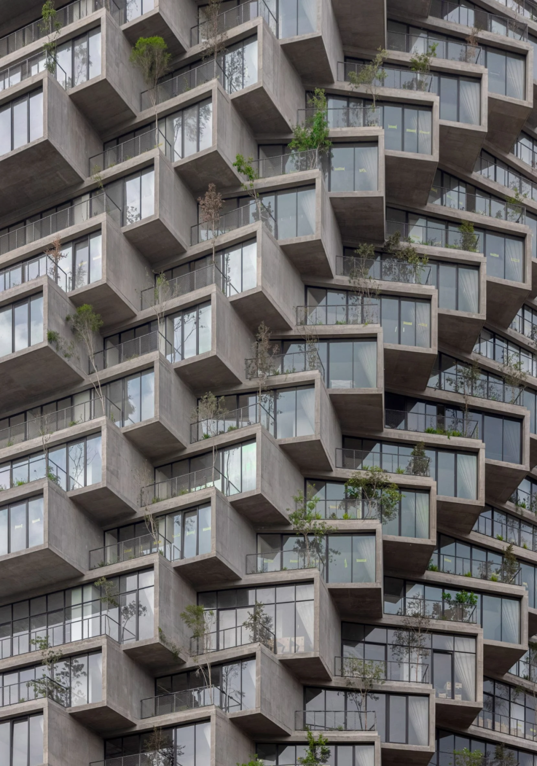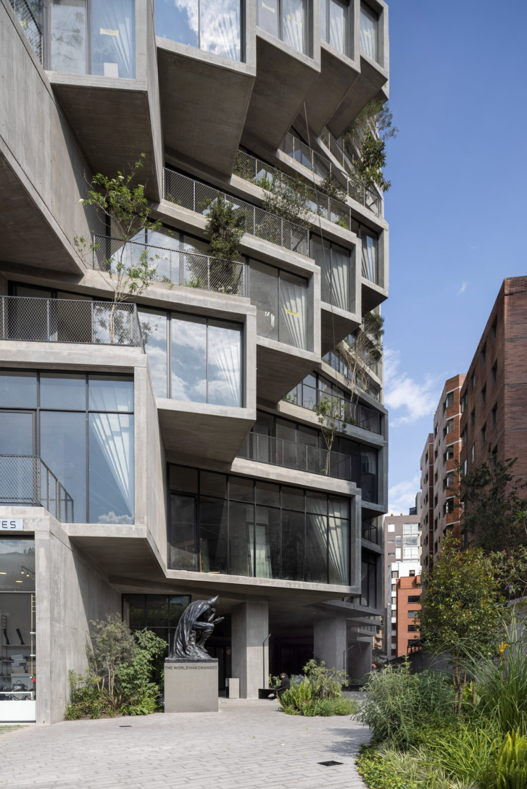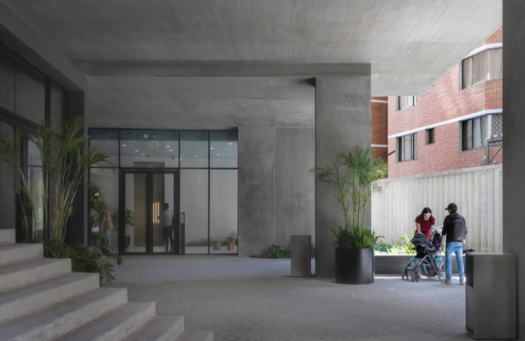 “我们将拉卡罗利纳公园引入建筑,在露台种植当地的树和植被:离公园越近,树就越高,”设计团队解释道。“每个阳台下的空心墙有足够的空间容纳每颗树的根系。种植的树池成为公寓内的一个混凝土雕塑,同时是上层公寓的树根区。”