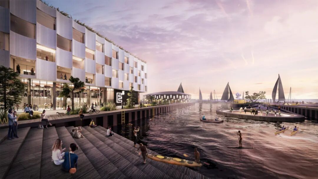 事务所说:“新的总体规划是根据现场目前的环境参数来制定的,包括来自海港的噪音、主要的西风、涨潮和风暴潮以及光照。”