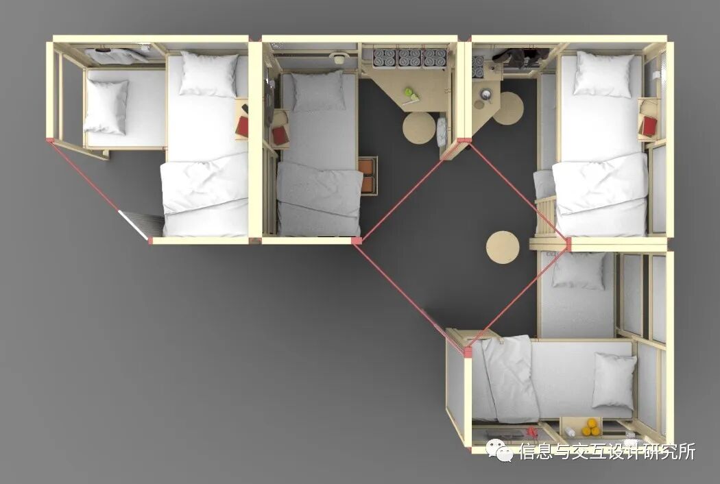 每个住宅单元是模块化的,允许创建网格或住宅区。临时住房还提供窗帘,当你需要的时候可以让你拥有自己的私人空间,当然也可以让你的房子成为小型开放社区的一部分。