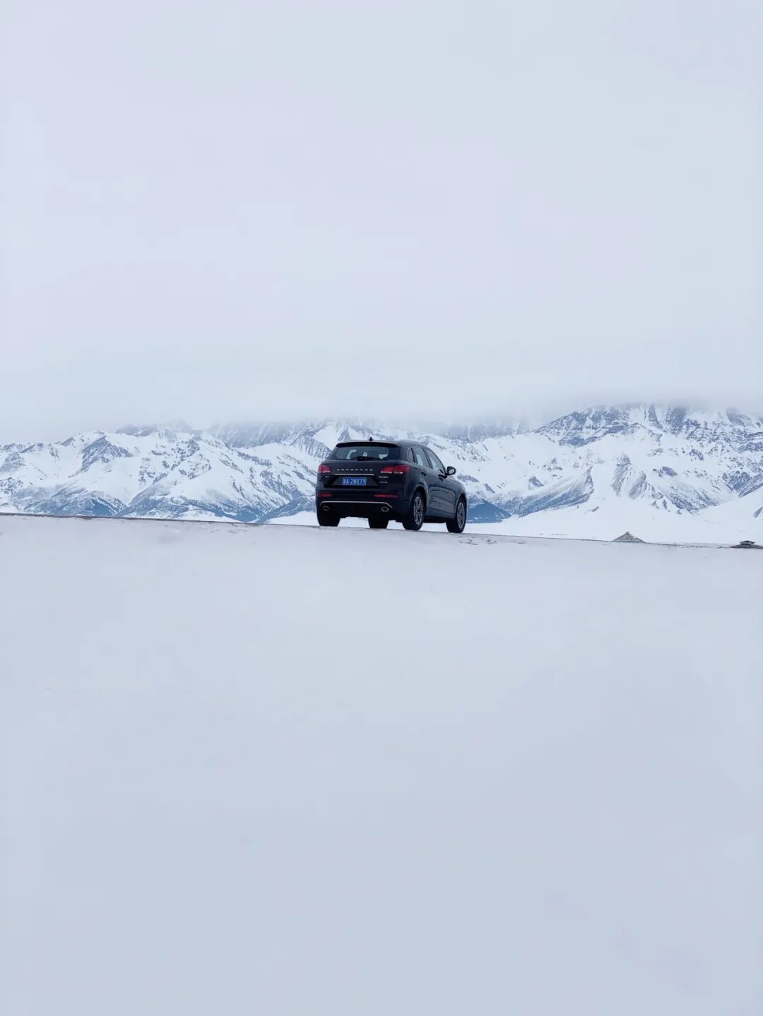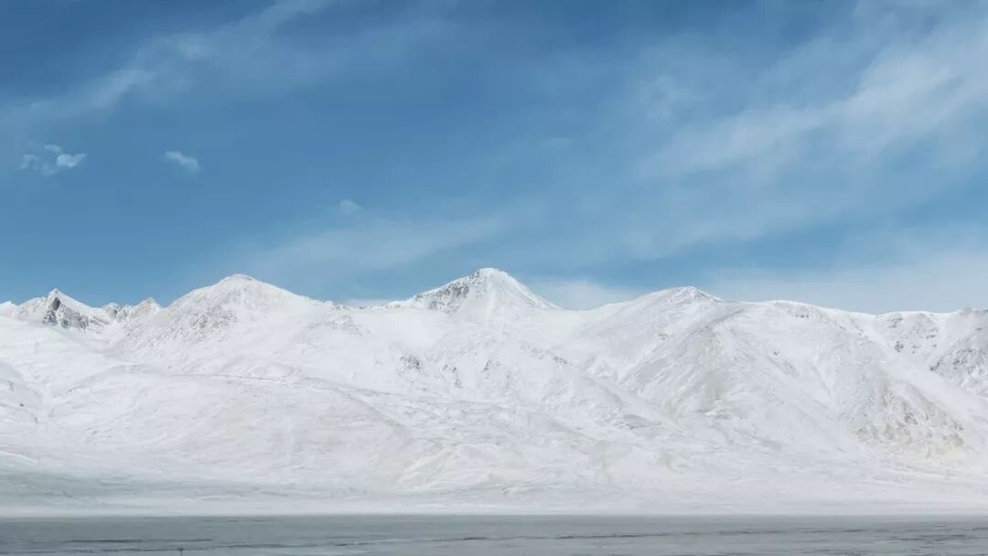 极简雪景照片,在取景时画面中要有主体,这个主体可以是建筑、动物、人、树等等,背景画面中不宜有过多的其他扰乱画面的景物,多以干净的天空、雪地、云海、水面等作为背景。