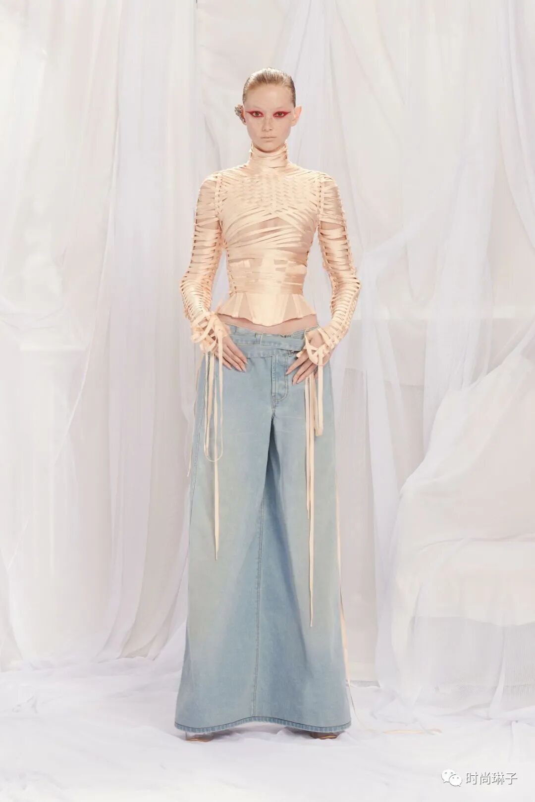 Jean Paul Gaultier让·保罗 2022春夏高级定制系列在设计师 Glenn Martens的奇妙创意下,通过线条、褶皱、波纹等如雕塑一般的形态重塑了Jean Paul Gaultier让·保罗 创造的女性之美。