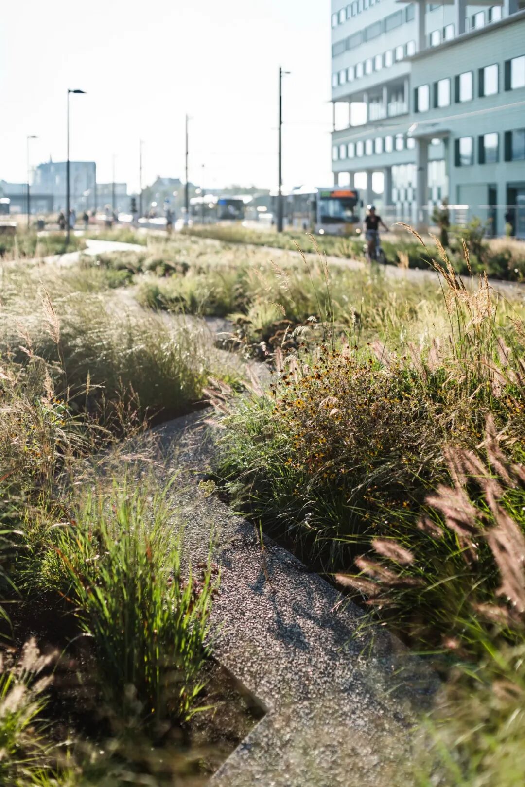 花园里丰富的植物种类在每个季节都会有惊喜。ZNA和Park Spoor Noord之间的区域将以广阔的花卉草地、树阵和雨水花园来美化景观。这些元素旨在营造一种公园的氛围,使医院建筑的外部景观空间与周围环境相连接。