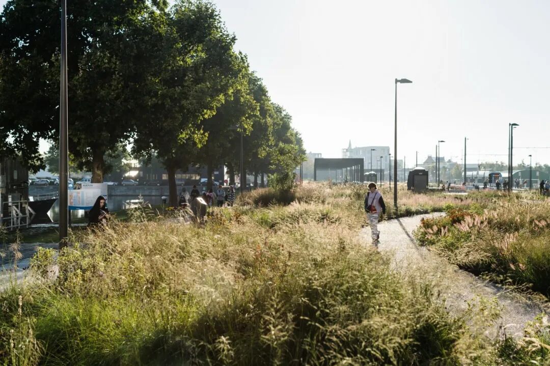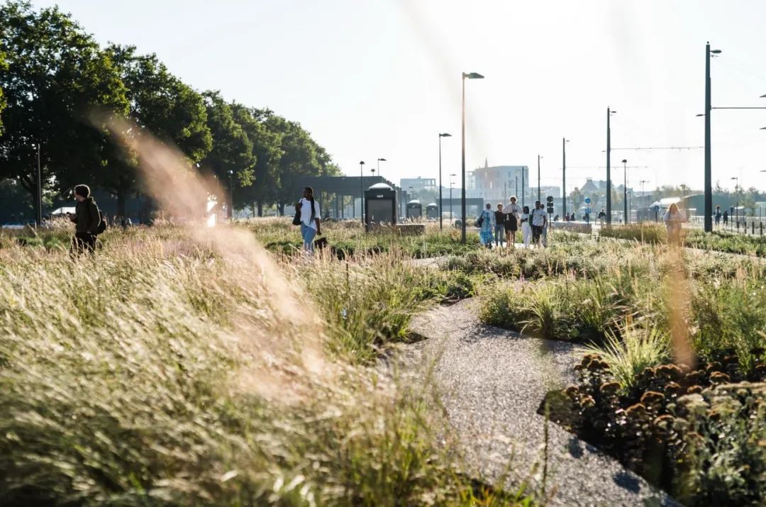 Besides the necessary paving, the almost three hectares of public square are designed as green as possible. In line with the image quality of the Eilandje, a 5000 m² prairie garden is laid out on the underground car park. The garden between ZNA and the docks will be the perfect relaxation area for patients, their visitors and staff.
