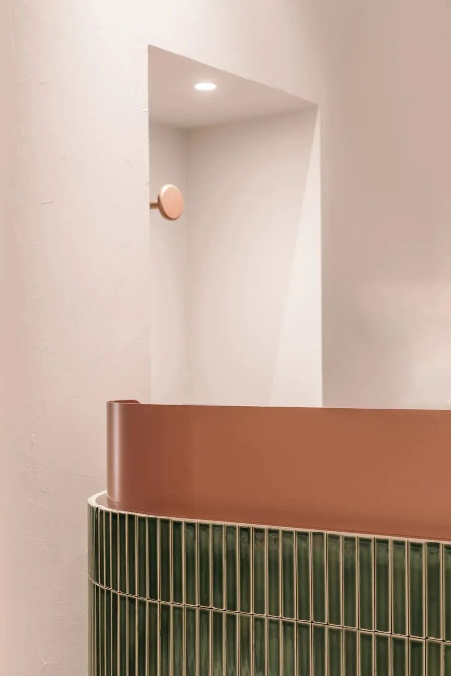 购物结束后,将被邀请到一个由日本琉璃瓦和铜细节制成的柜台付款,这是室内设计的一个关键特征。