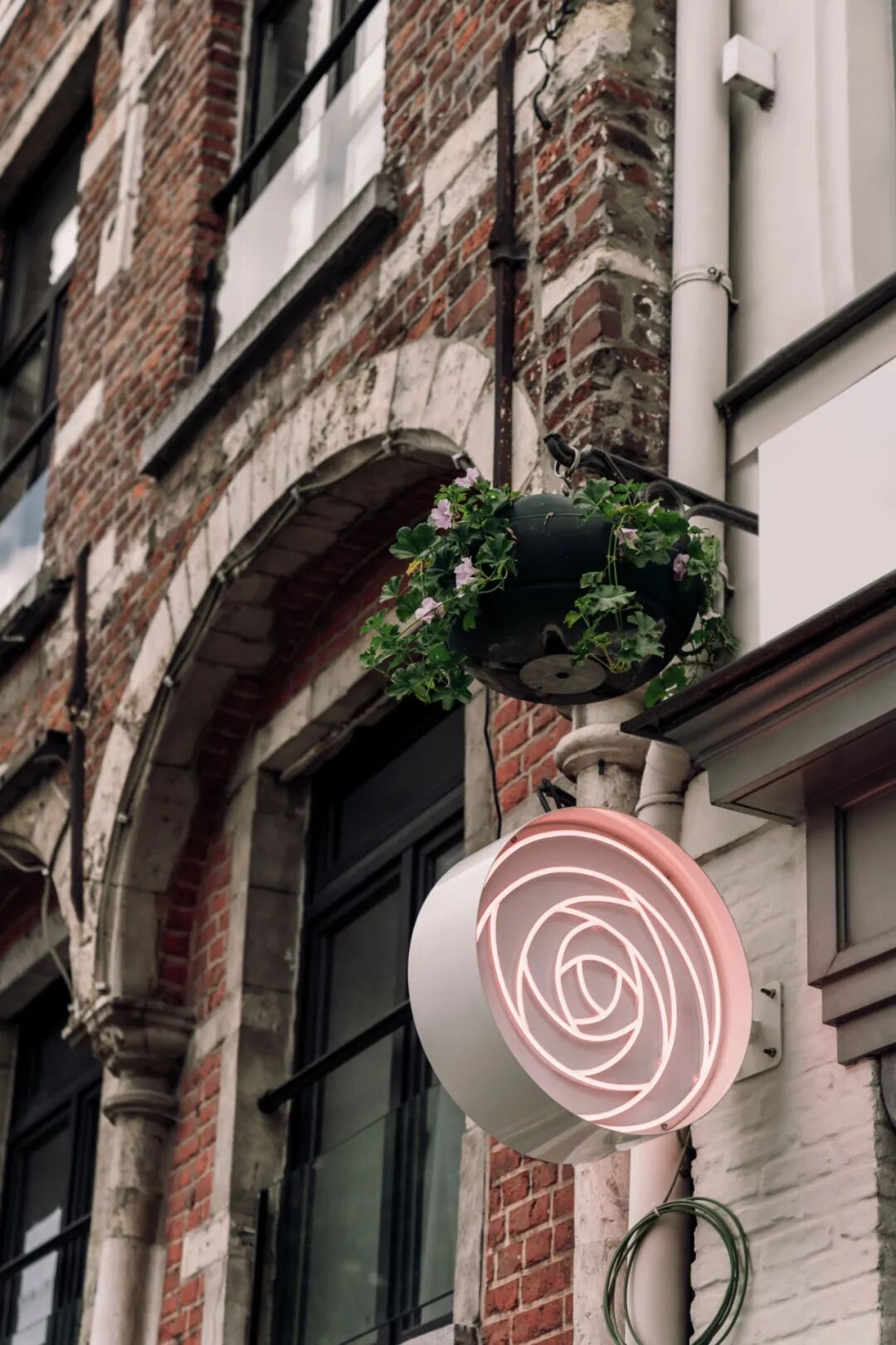 品牌融入了盛开的玫瑰标志,成为室内设计的一部分。