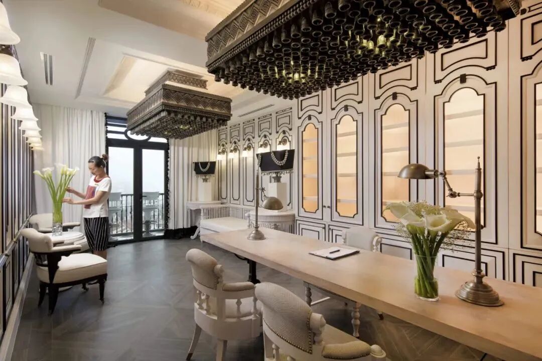 Bill说:“疯狂购物是我们最喜欢的时光之一。大约六年前,我和Jirachai在巴黎北部不太豪华的街道上搜寻,发现了一顶1930年代的越南竹帽,上面覆盖着白色和西瓜圆点。这个小宝贝启发了整个酒店的灵感,让我将酒店的故事建立在当地山地部落如何影响20世纪早期的巴黎高级时装上。”