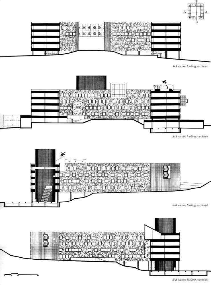 断层线的地形既成为设计表达的限制,亦成为建筑经典不朽的原因。无论是坚固的、厚重的,还是透明的、脆弱的,多种形式的空间碎片交织在一起,在彼此的对位与对比中成就了这座秘鲁的时代地标。