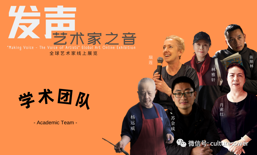 Culture Sower 本次展览的学术团队:芝加哥艺术论坛创办人 杨远威,上海大学上海美术学院教授,博士生导师苏金成,上海美术学院国画系教授, 硕士生导师肖素红,爱尔兰艺术家倪芙瑞莲,艺术家林雅轩,艺术家陈顺林。