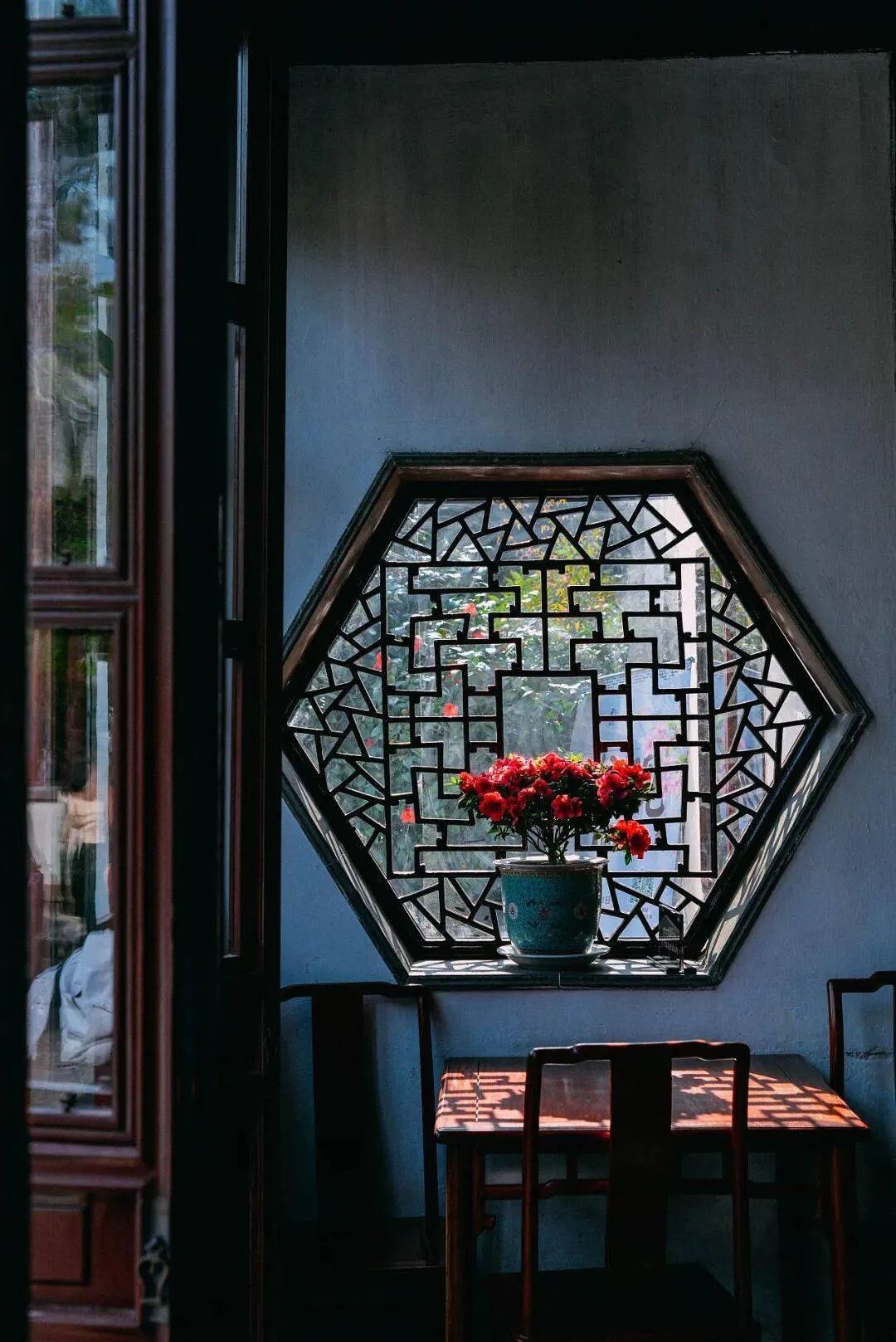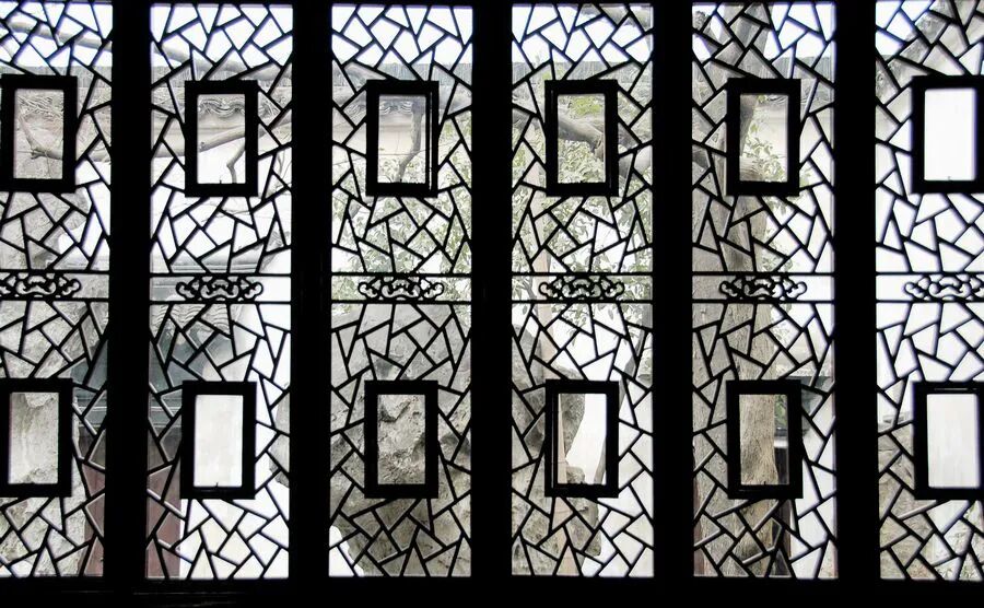 《园冶》中说:“冰裂惟风窗之最宜者,其文致减雅,信画如意,可以上疏下密之妙。”在园林里,常见冰裂纹镂窗,看似凌乱,却有一种和谐的规律感。